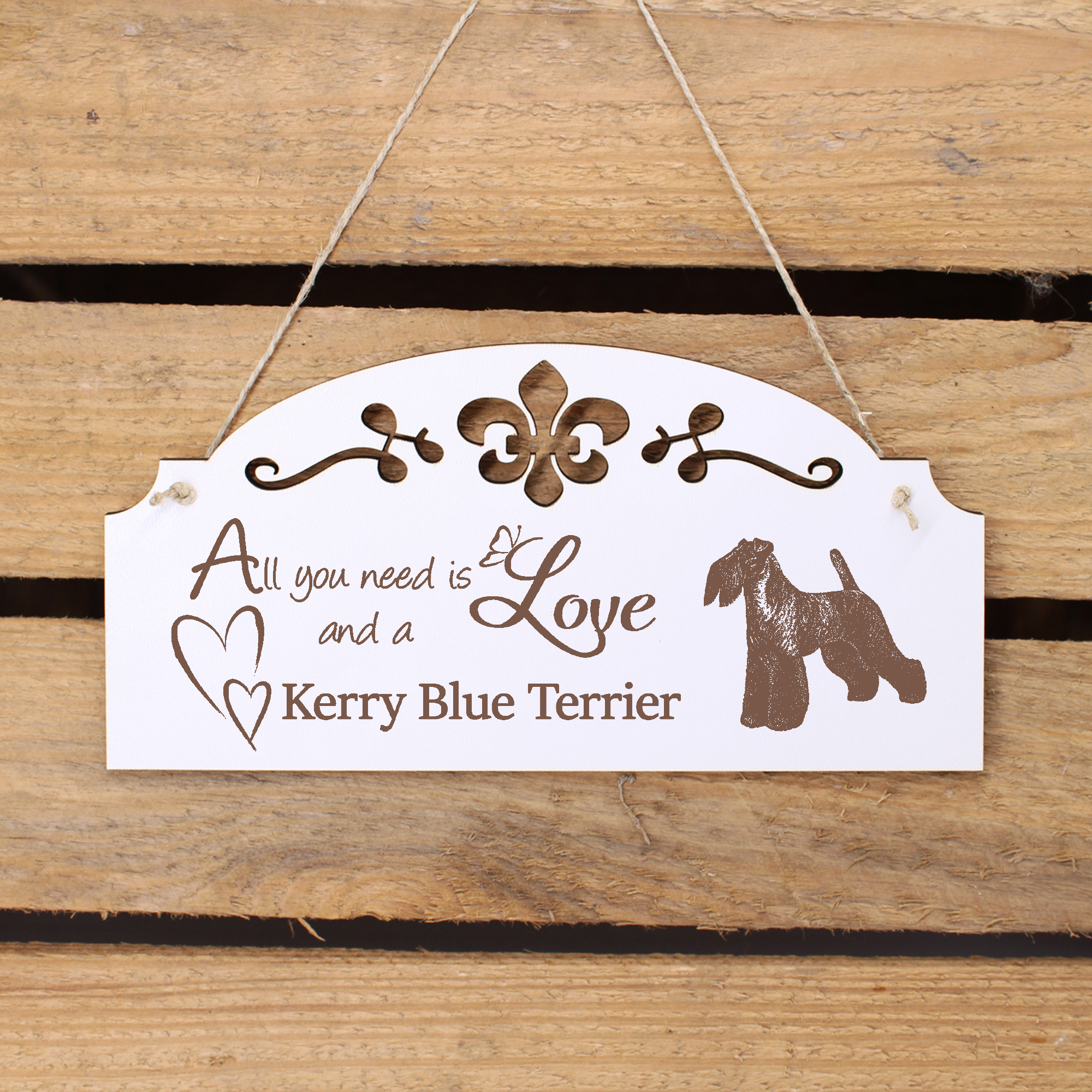 - WANDDEKO: schöne Dekoration im Retro oder Vintage Stil mit dem Spruch - All you need is Love and a Kerry Blue Terrier - die Türdeko ist nicht nur lustig, sondern auch modern