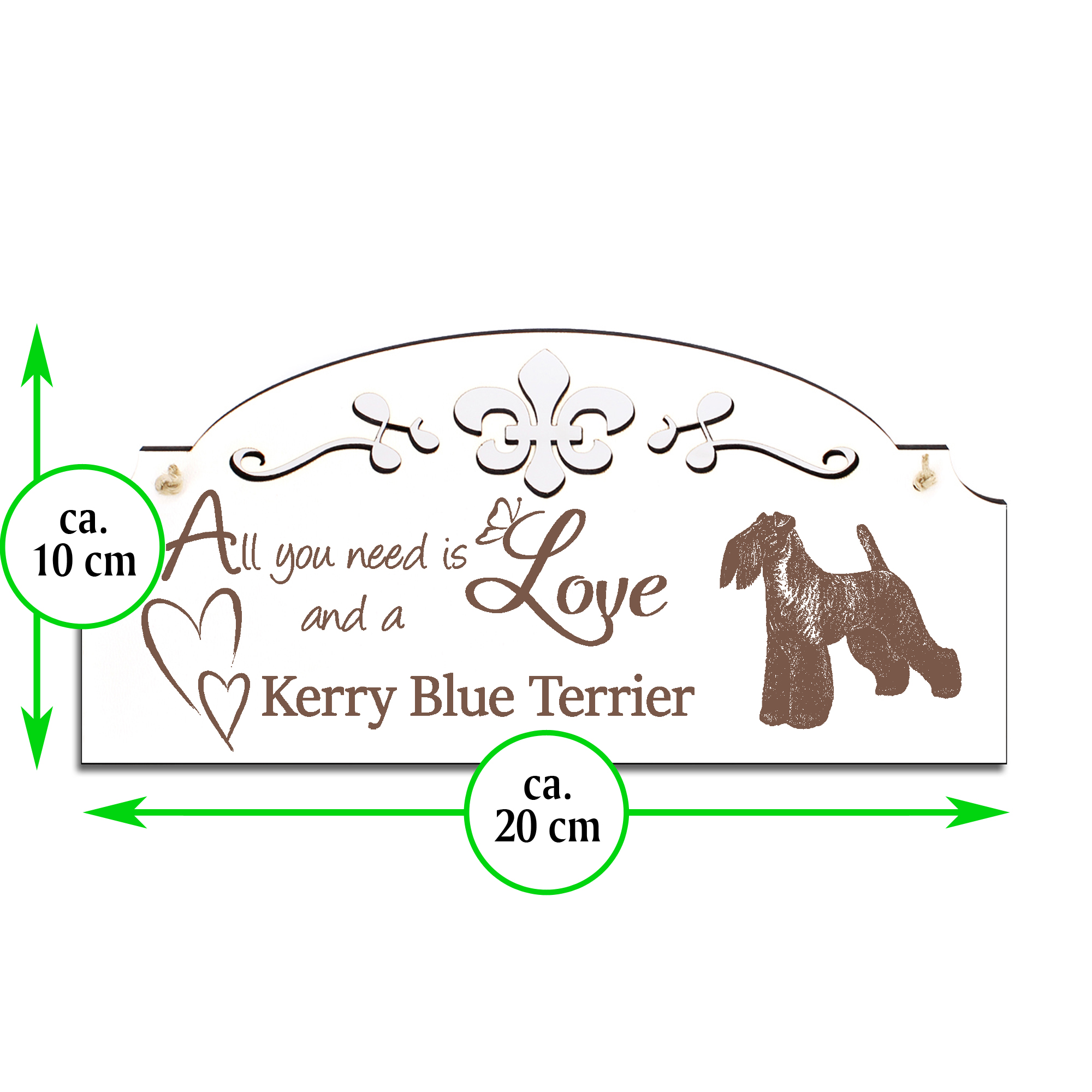 Schild Kerry Blue Terrier Deko 20x10cm - All you need is Love and a Kerry Blue Terrier - Holz
