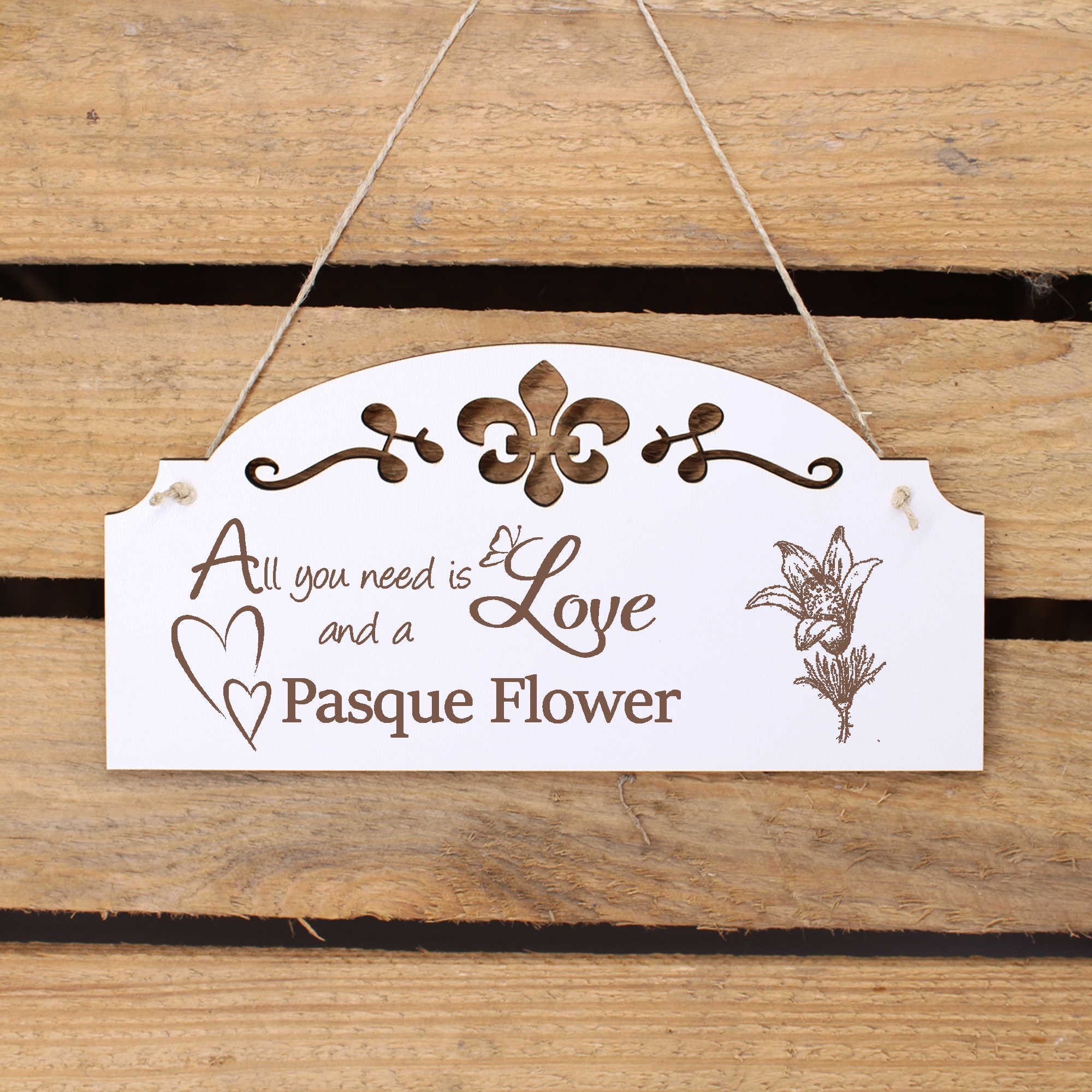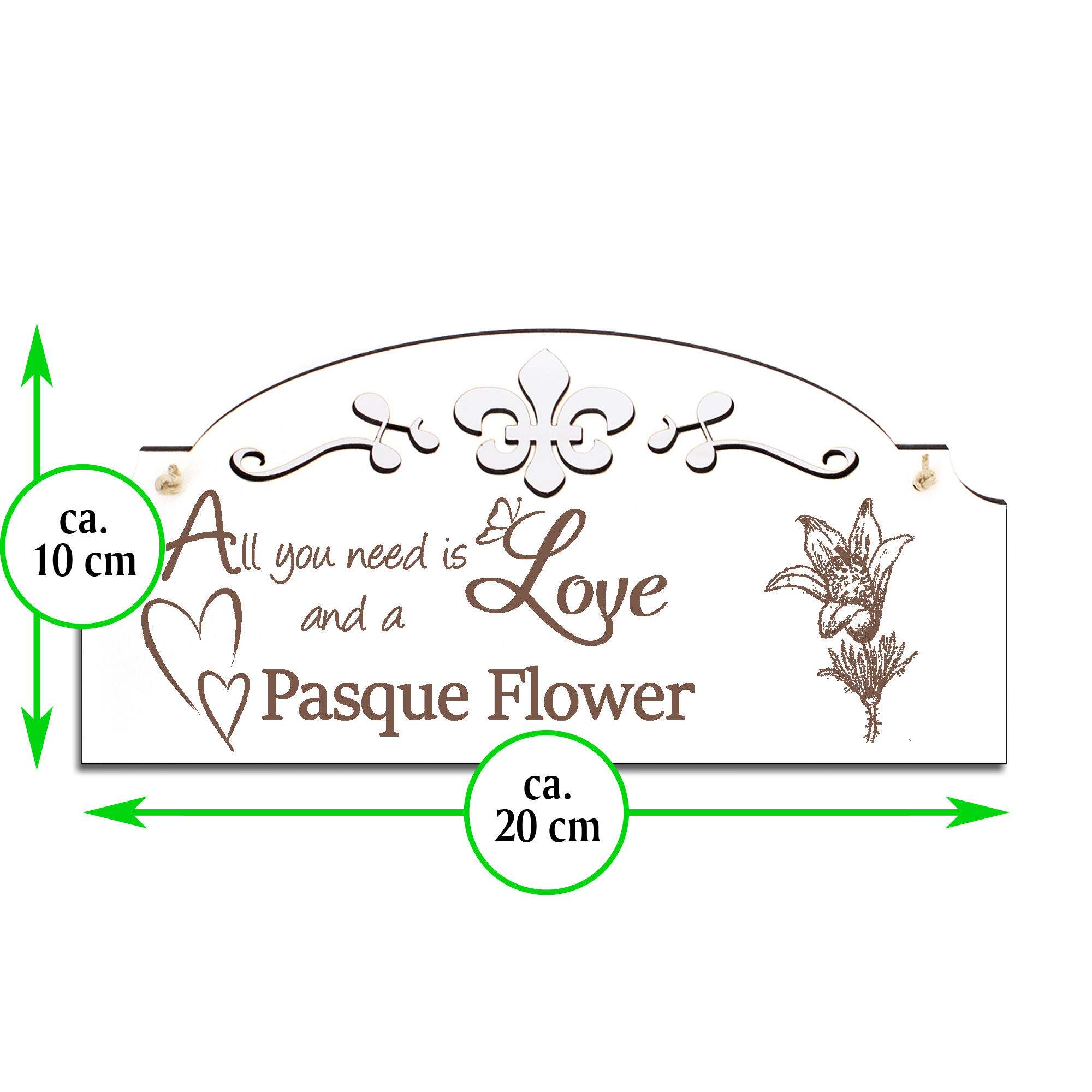 Schild Küchenschelle Deko 20x10cm - All you need is Love and a Pasque Flower - Holz