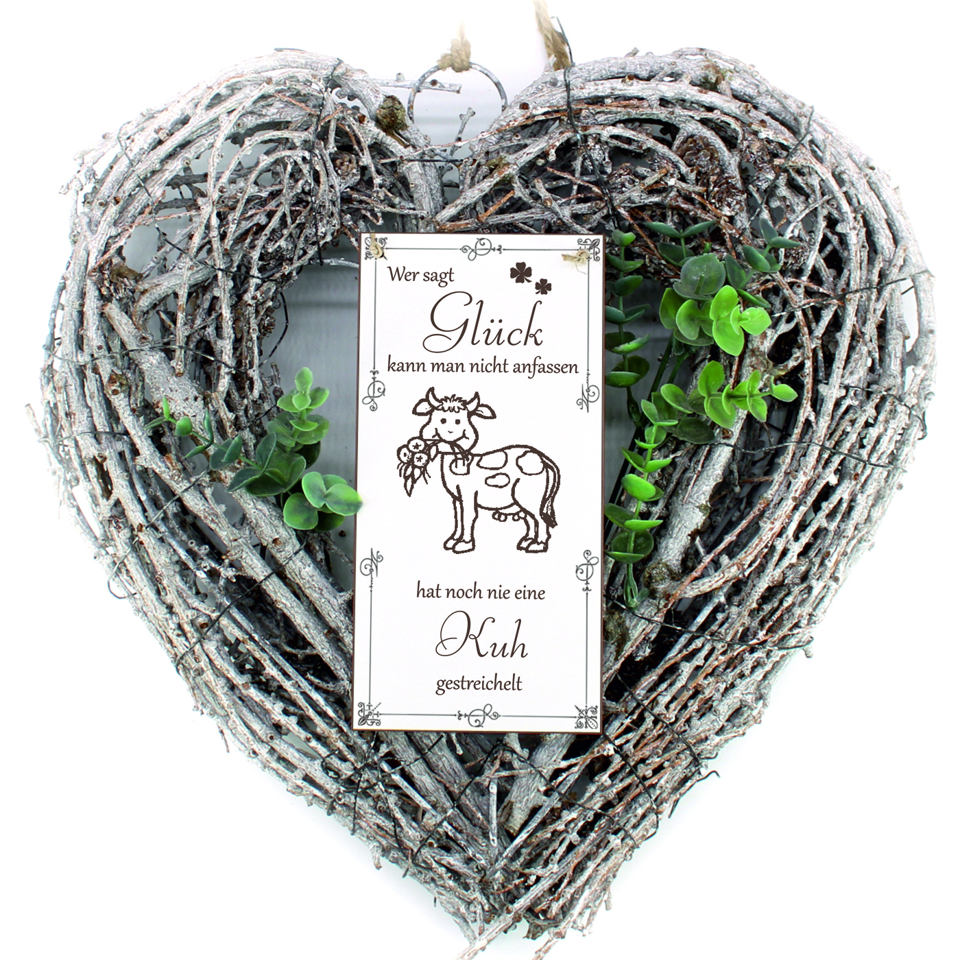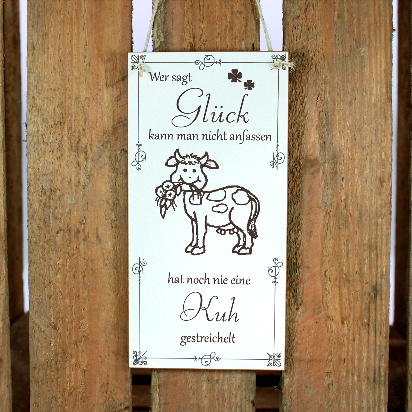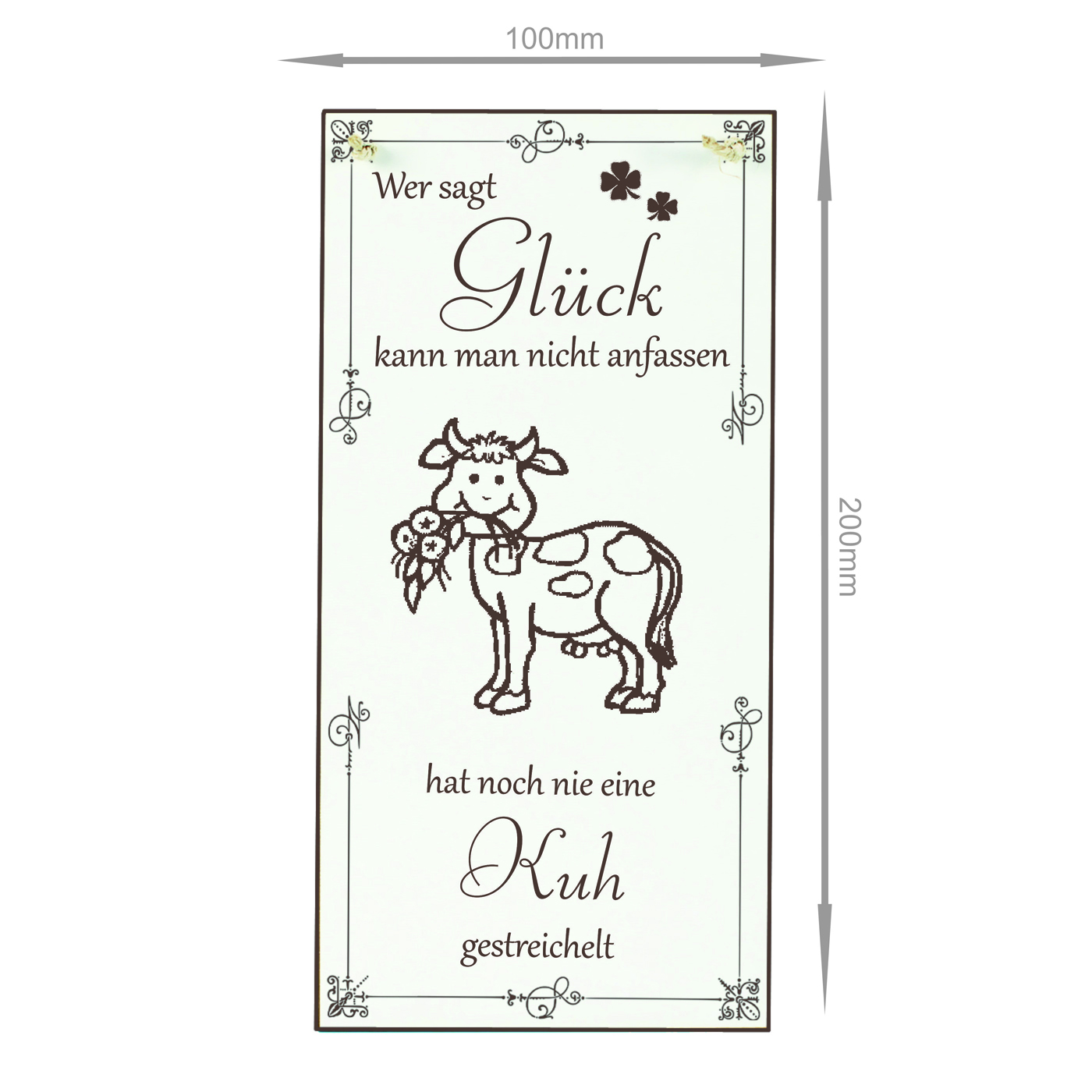 Schild Kuh Glück kann man streicheln Spruch - Vintage Dekoschild Tiere Türschild 10 x 20 cm