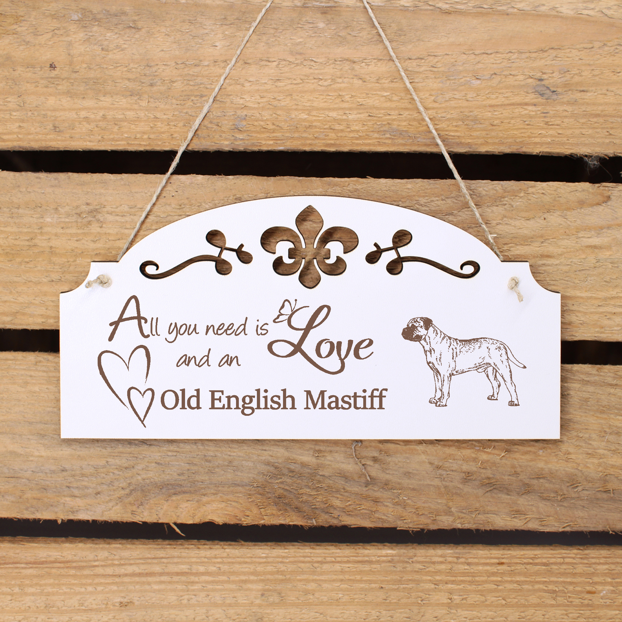 - WANDDEKO: schöne Dekoration im Retro oder Vintage Stil mit dem Spruch - All you need is Love and an Old English Mastiff - die Türdeko ist nicht nur lustig, sondern auch modern