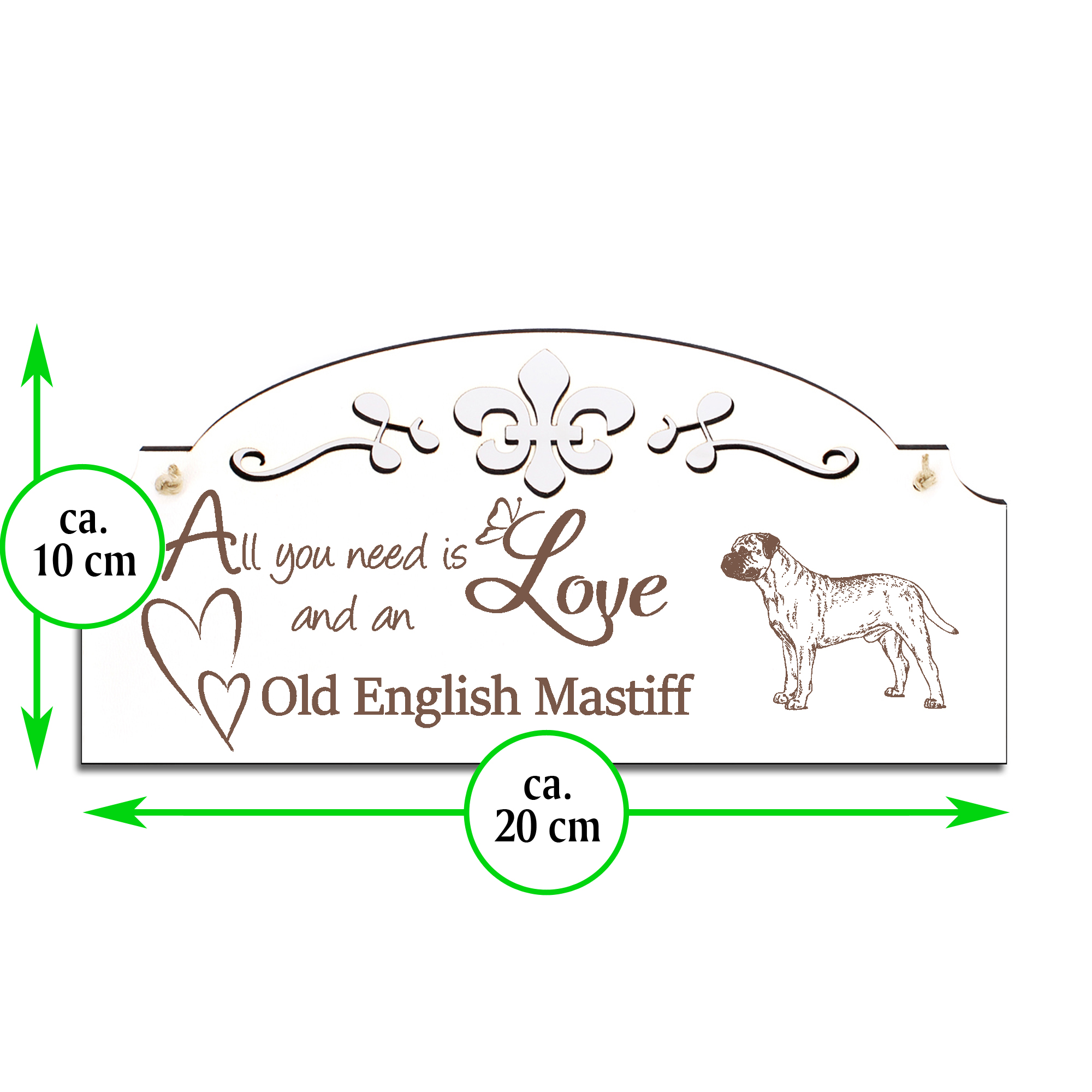 Schild Old English Mastiff Deko 20x10cm - All you need is Love and an Old English Mastiff - Holz