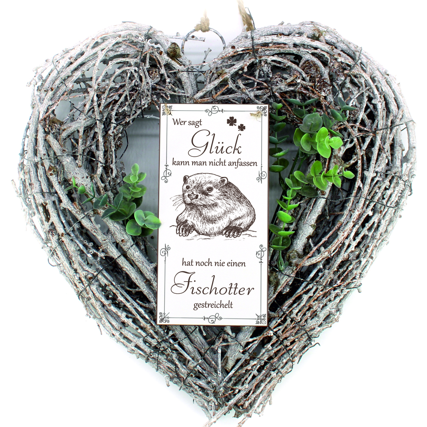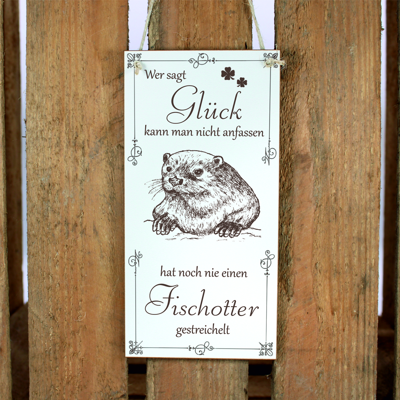 Schild Otter Glück kann man streicheln Spruch - Vintage Dekoschild Tiere Türschild 10 x 20 cm