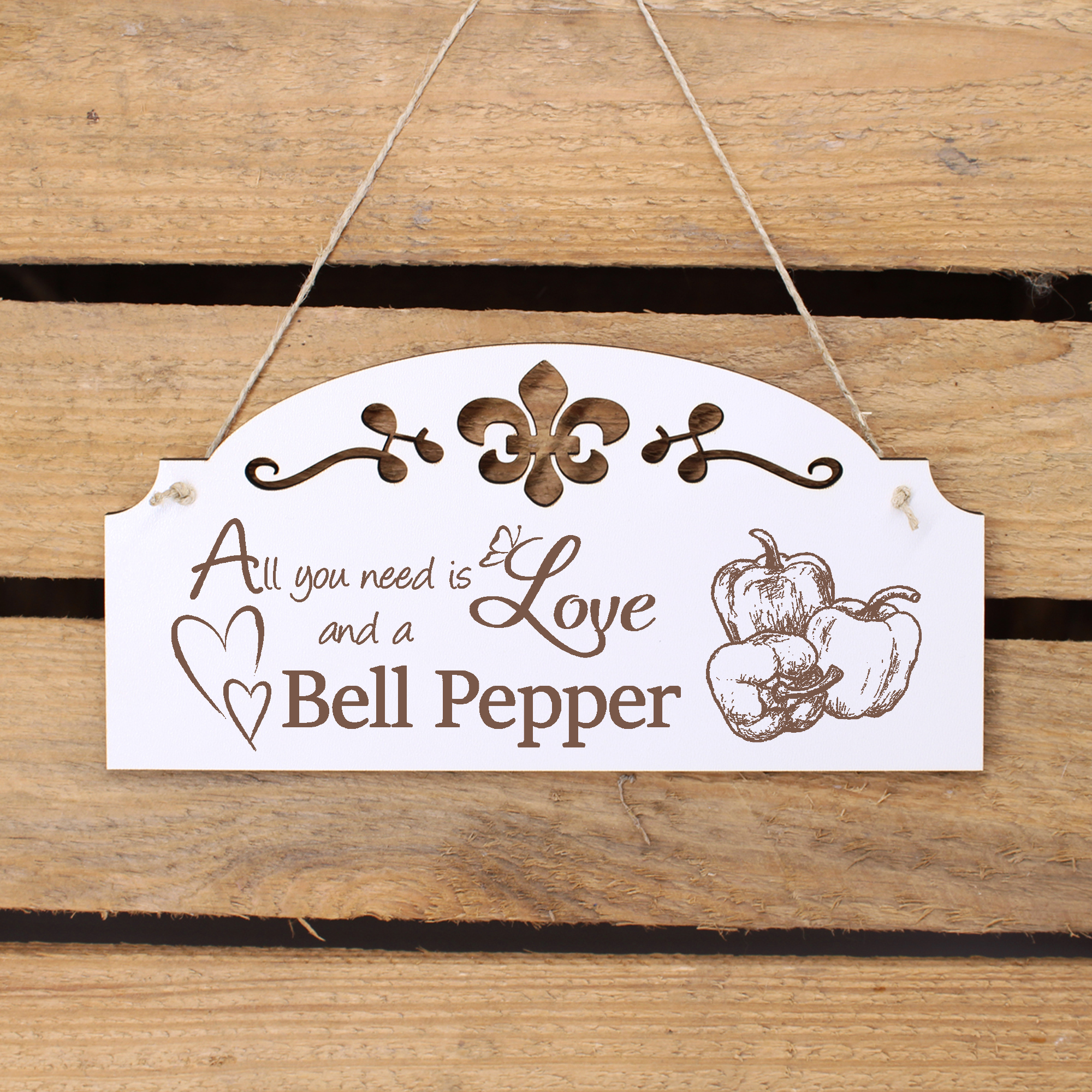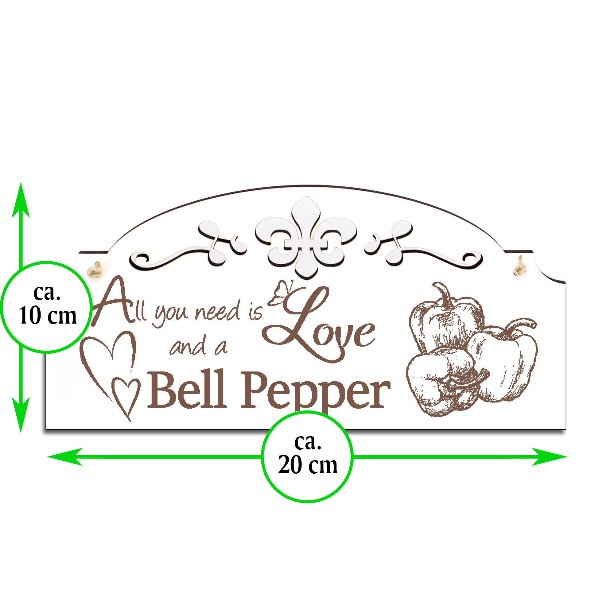 Schild Paprika Deko 20x10cm - All you need is Love and a Bell Pepper - Holz
