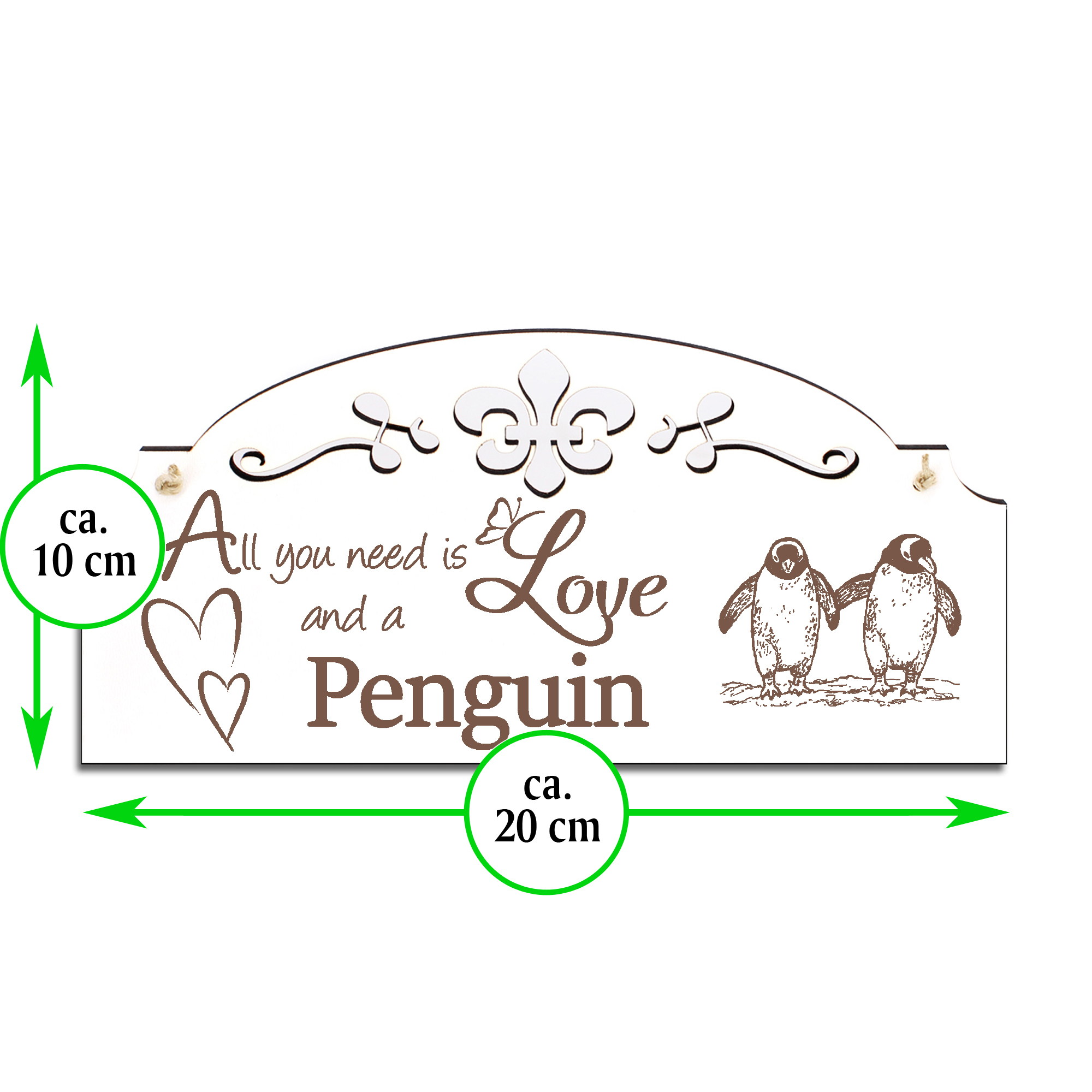 Schild Pinguinpaar Deko 20x10cm - All you need is Love and a Penguin - Holz