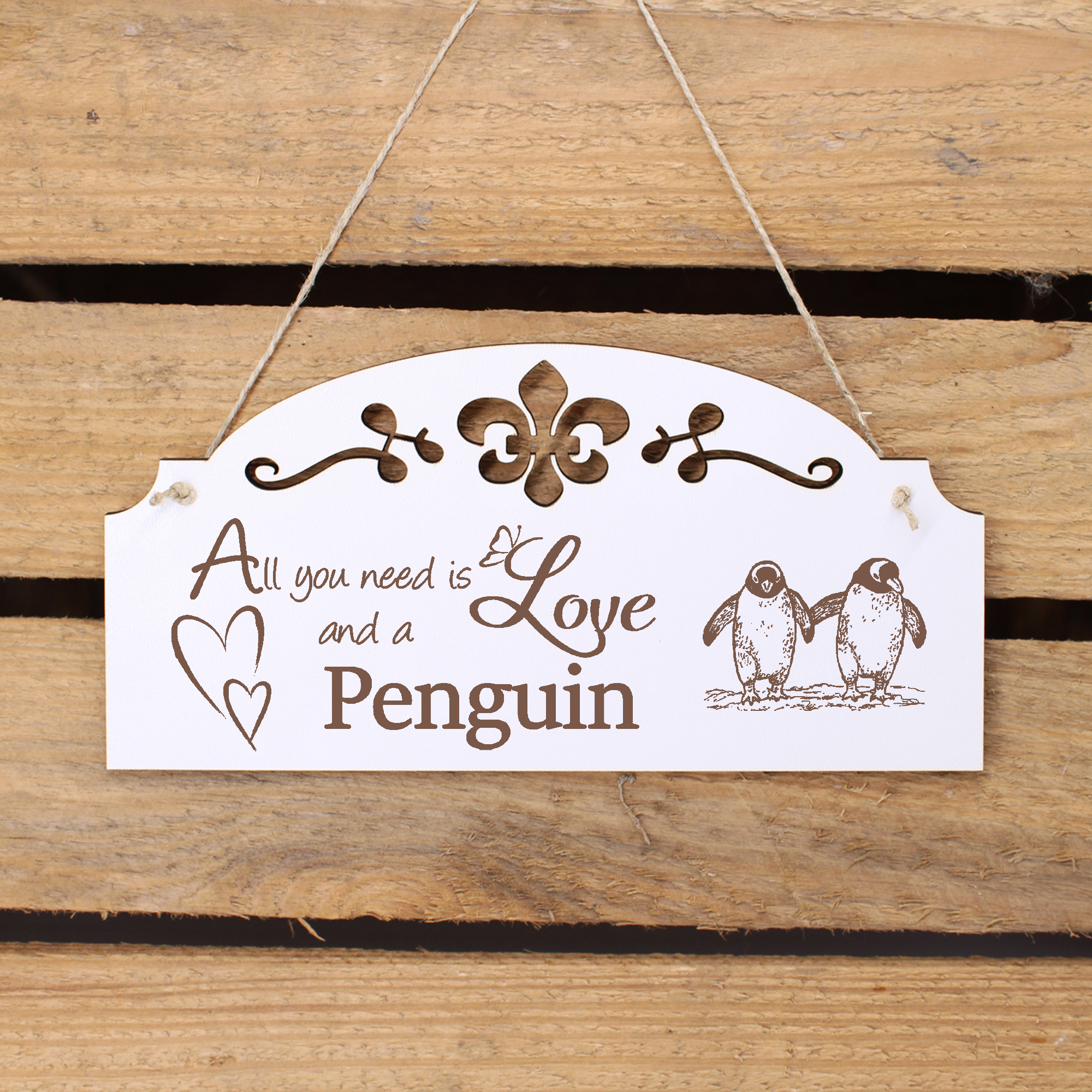 - WANDDEKO: schöne Dekoration im Retro oder Vintage Stil mit dem Spruch - All you need is Love and a Penguin - die Türdeko ist nicht nur lustig, sondern auch modern