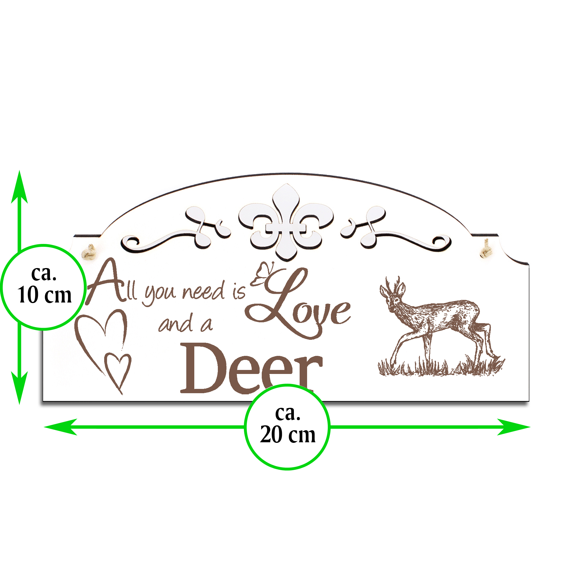 Produktinformationen "Schild Reh auf Wiese Deko 20x10cm - All you need is Love and a Deer - Holz"