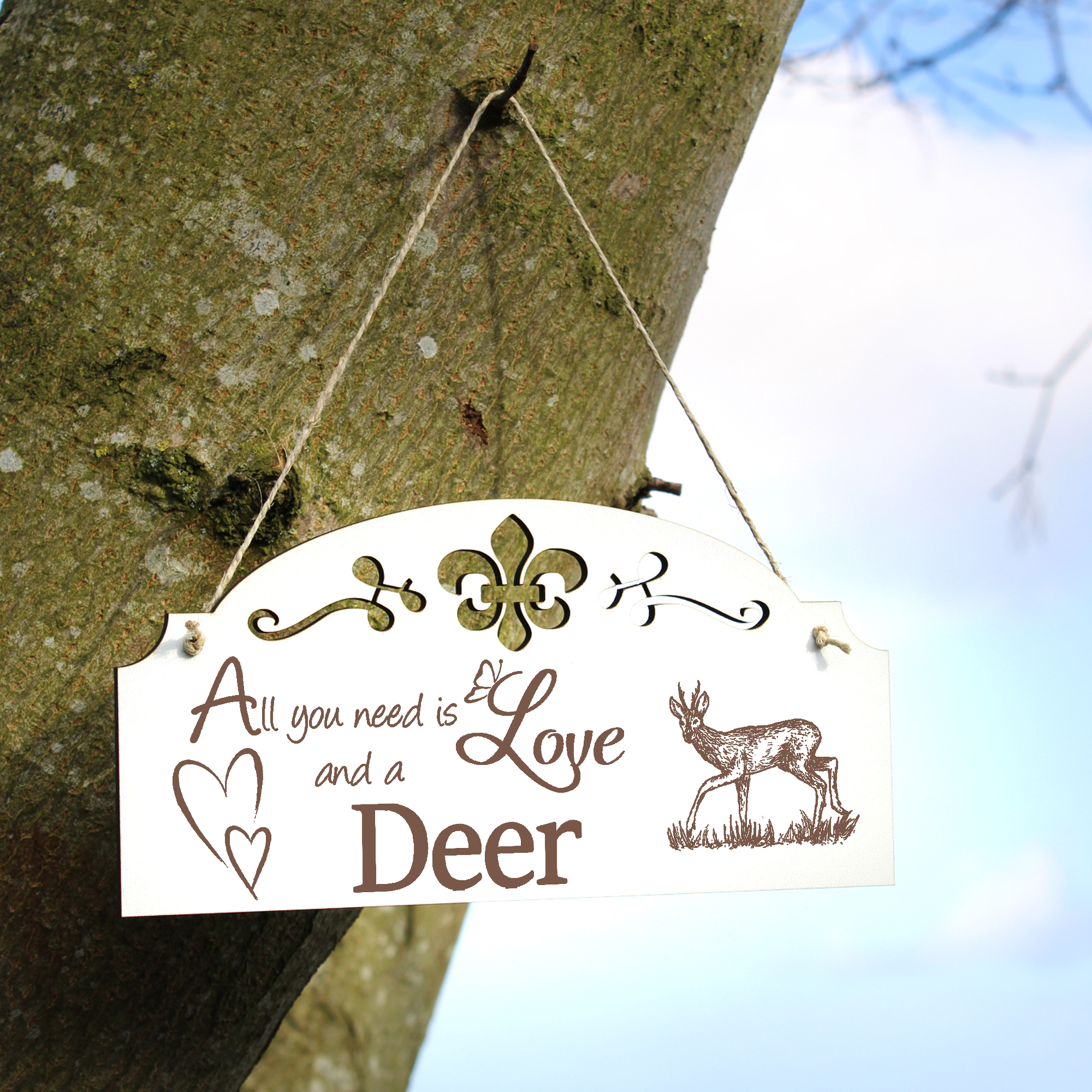 - WANDDEKO: schöne Dekoration im Retro oder Vintage Stil mit dem Spruch - All you need is Love and a Deer - die Türdeko ist nicht nur lustig, sondern auch modern