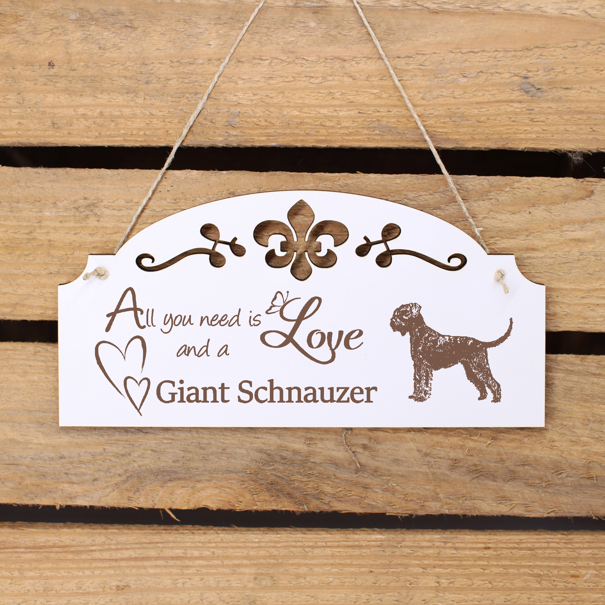 - WANDDEKO: schöne Dekoration im Retro oder Vintage Stil mit dem Spruch - All you need is Love and a Giant Schnauzer - die Türdeko ist nicht nur lustig, sondern auch modern