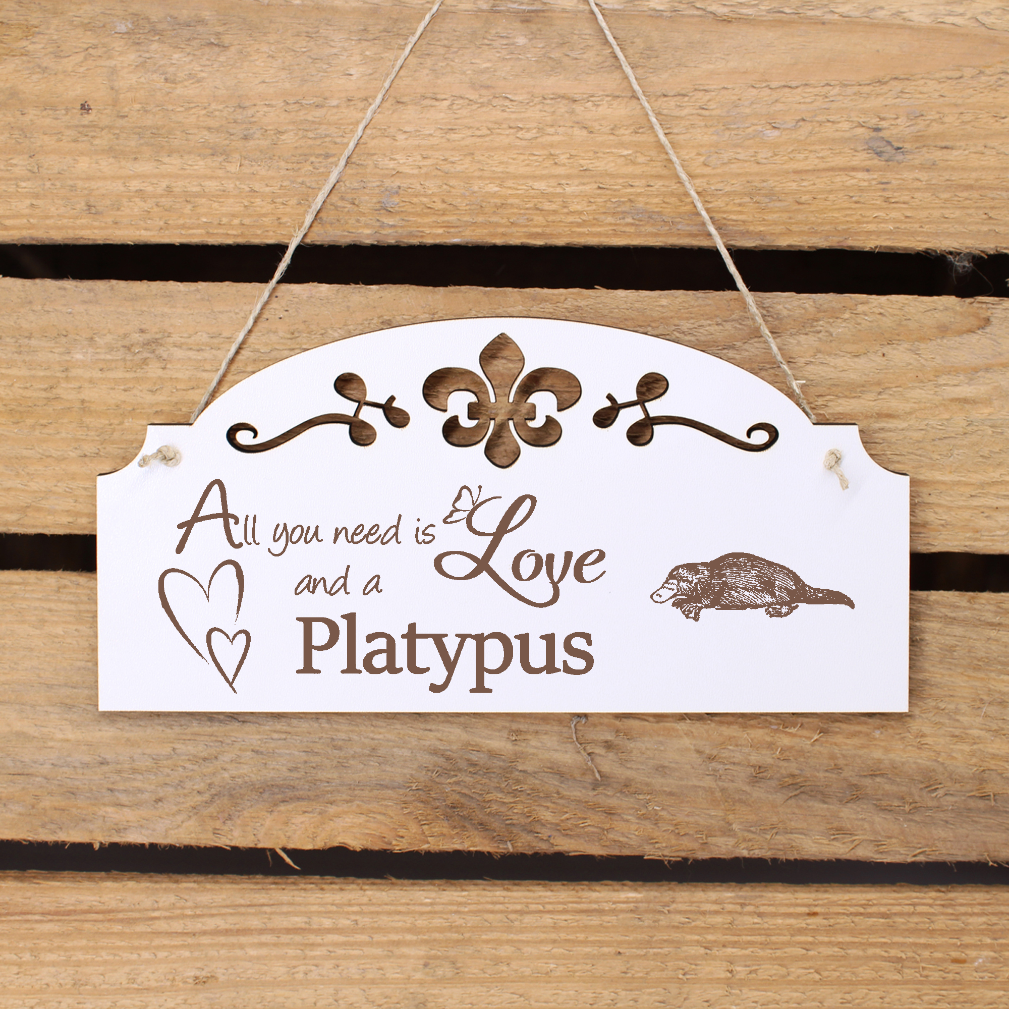 - WANDDEKO: schöne Dekoration im Retro oder Vintage Stil mit dem Spruch - All you need is Love and a Platypus - die Türdeko ist nicht nur lustig, sondern auch modern