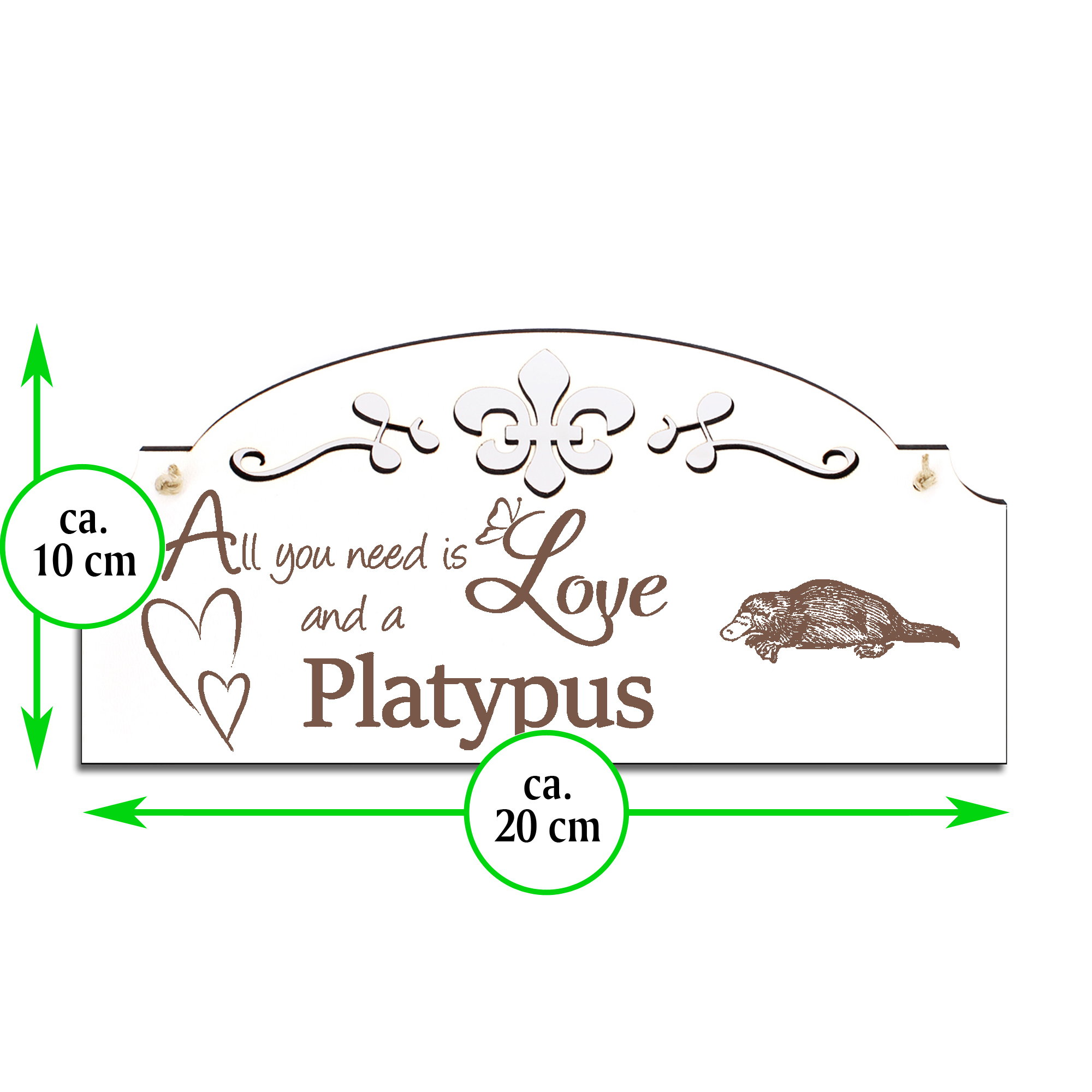 Schild Schnabeltier Deko 20x10cm - All you need is Love and a Platypus - Holz
