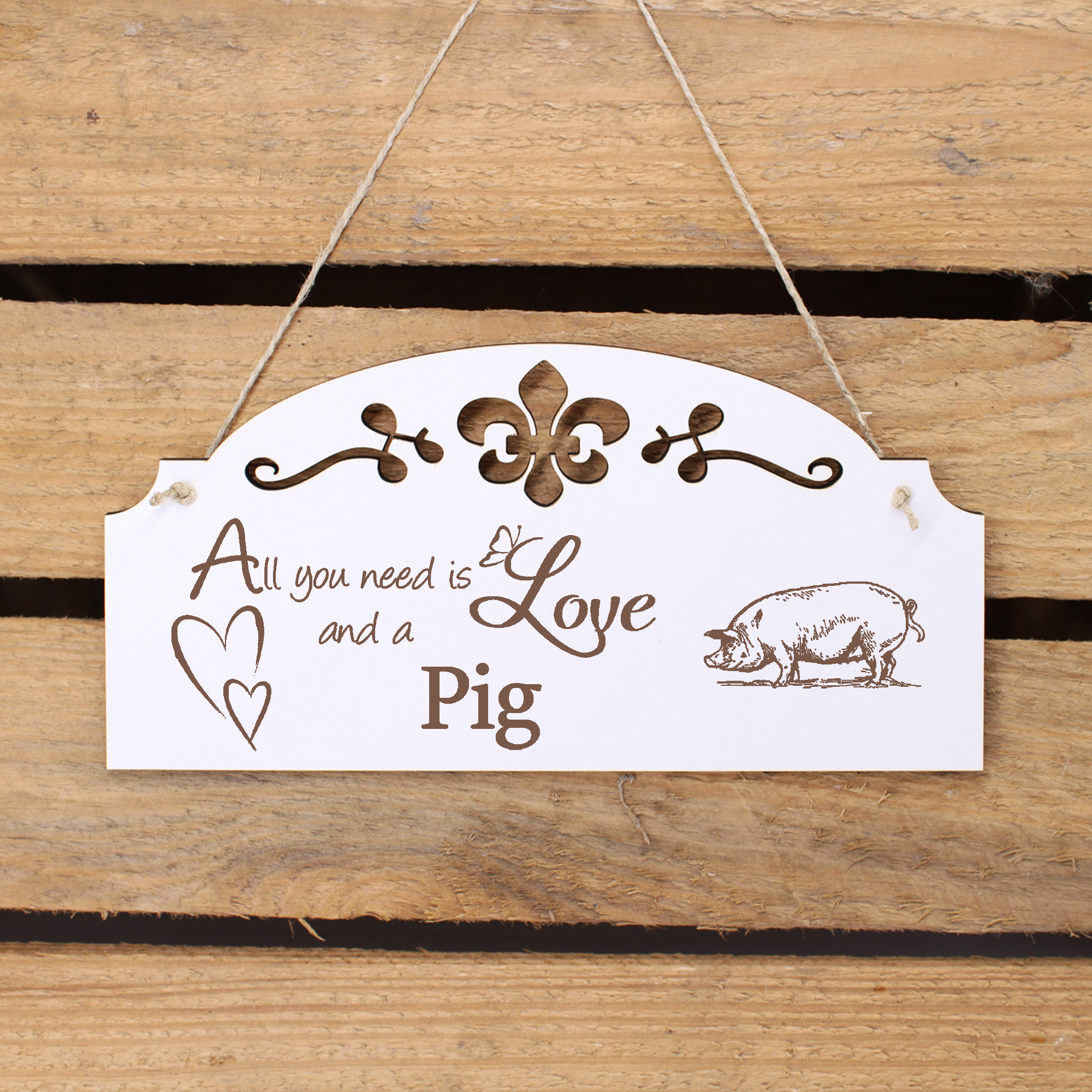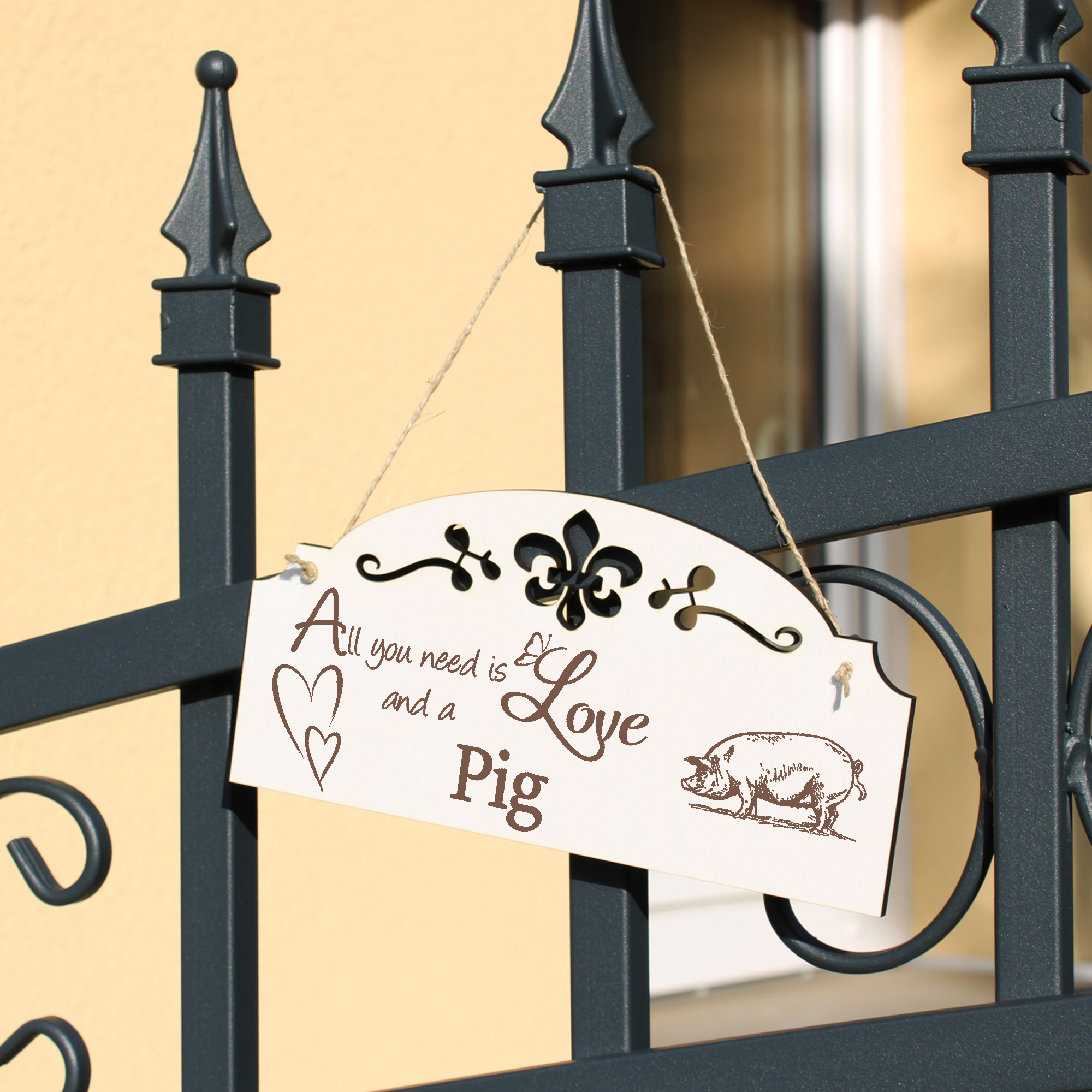 - WANDDEKO: schöne Dekoration im Retro oder Vintage Stil mit dem Spruch - All you need is Love and a Pig - die Türdeko ist nicht nur lustig, sondern auch modern