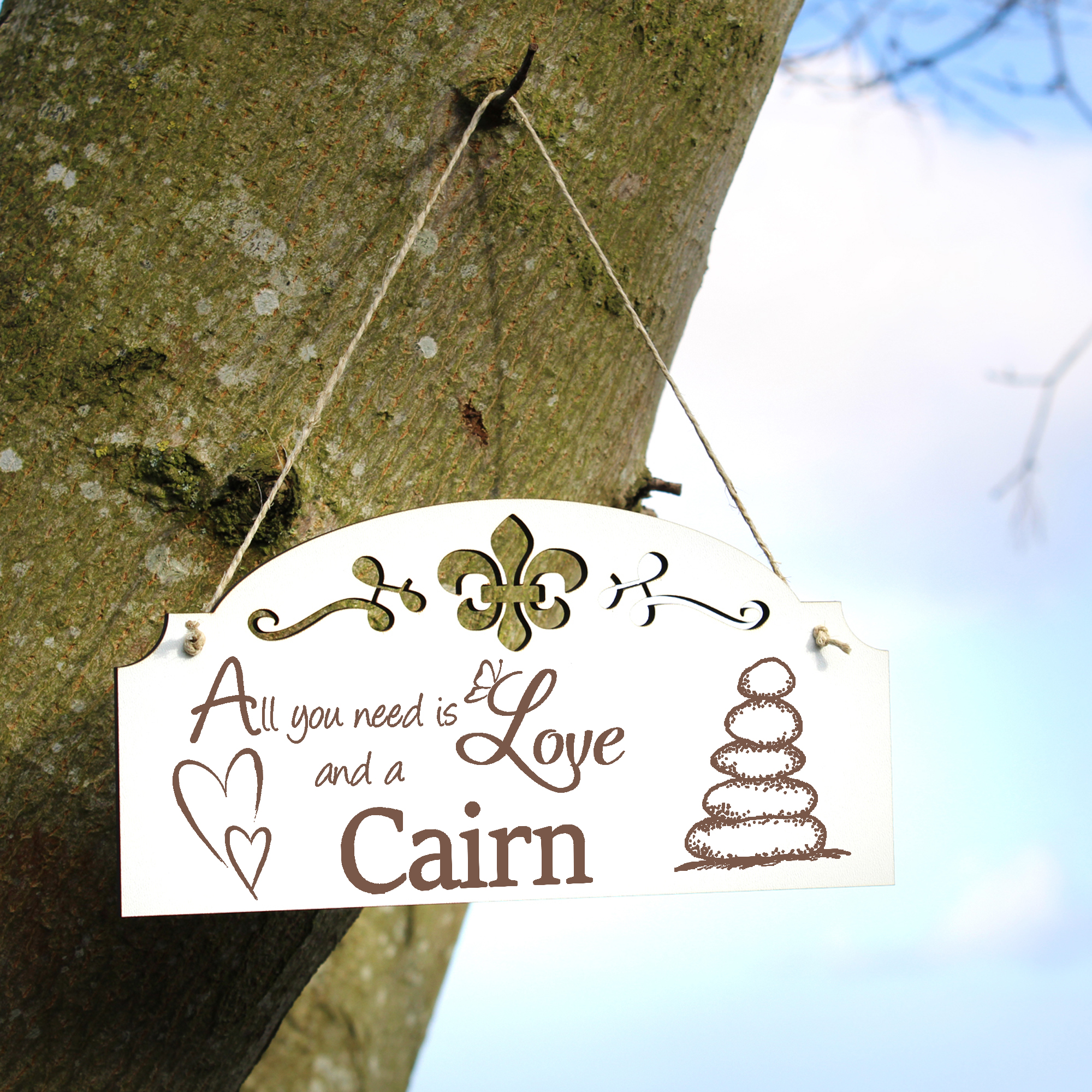 - WANDDEKO: schöne Dekoration im Retro oder Vintage Stil mit dem Spruch - All you need is Love and a Cairn - die Türdeko ist nicht nur lustig, sondern auch modern