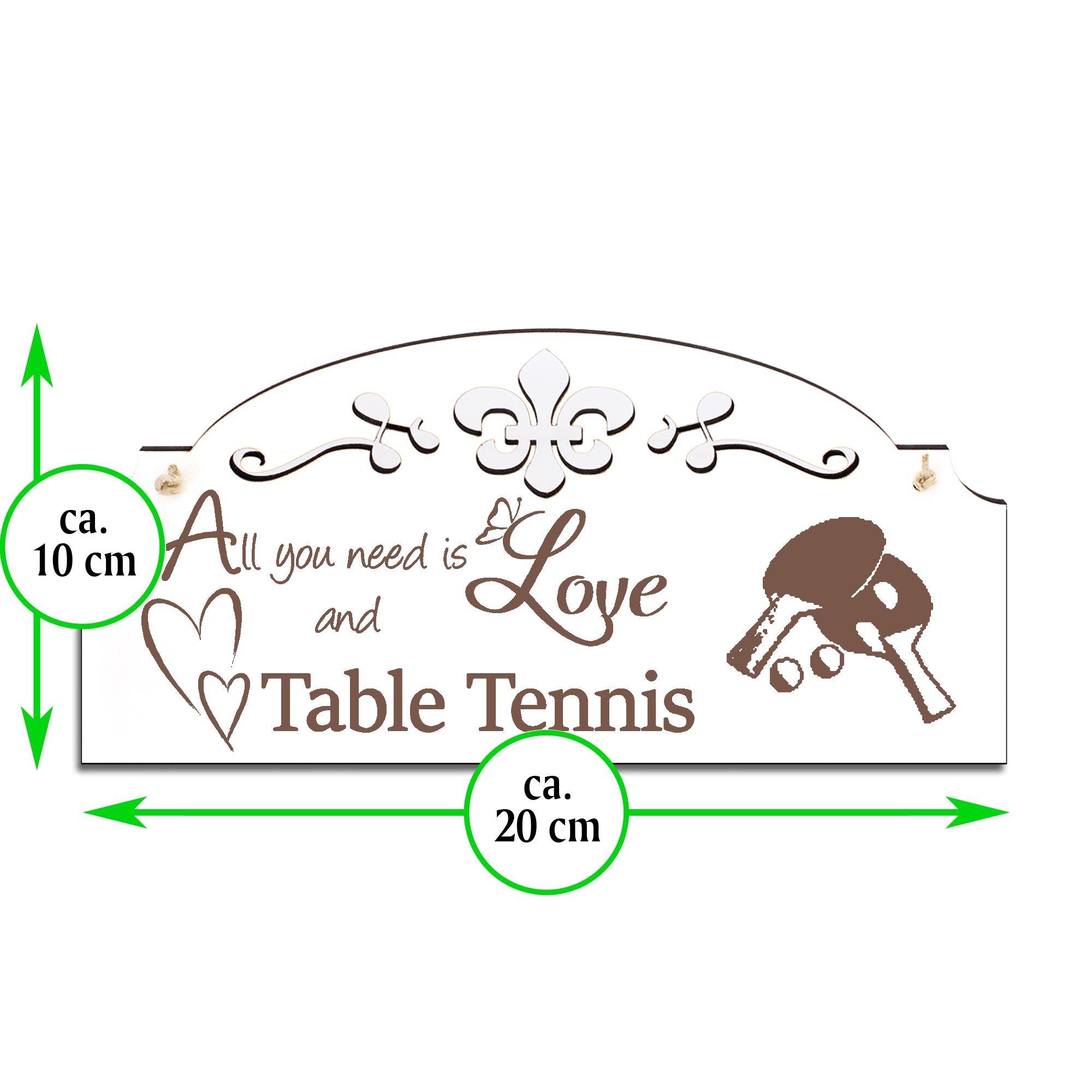 Schild Tischtennis Deko 20x10cm - All you need is Love and Table Tennis - Holz