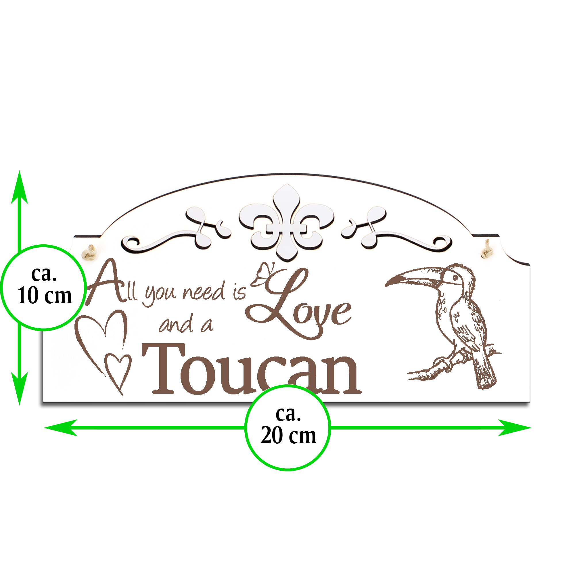 Schild Tukan Deko 20x10cm - All you need is Love and a Toucan - Holz