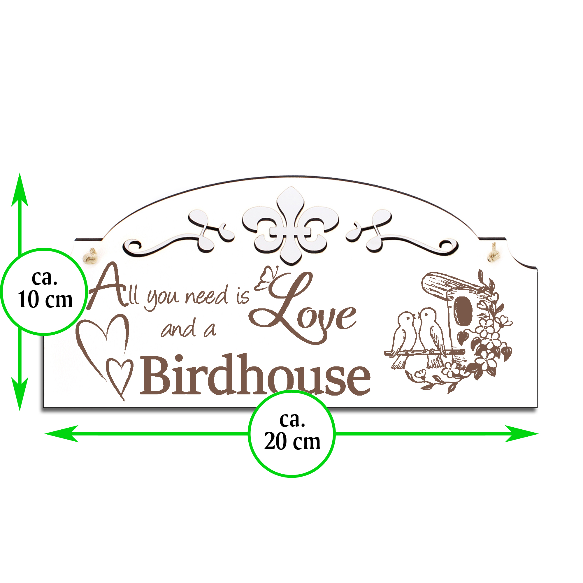 Schild Vogelhaus mit Vögeln Deko 20x10cm - All you need is Love and a Birdhouse - Holz