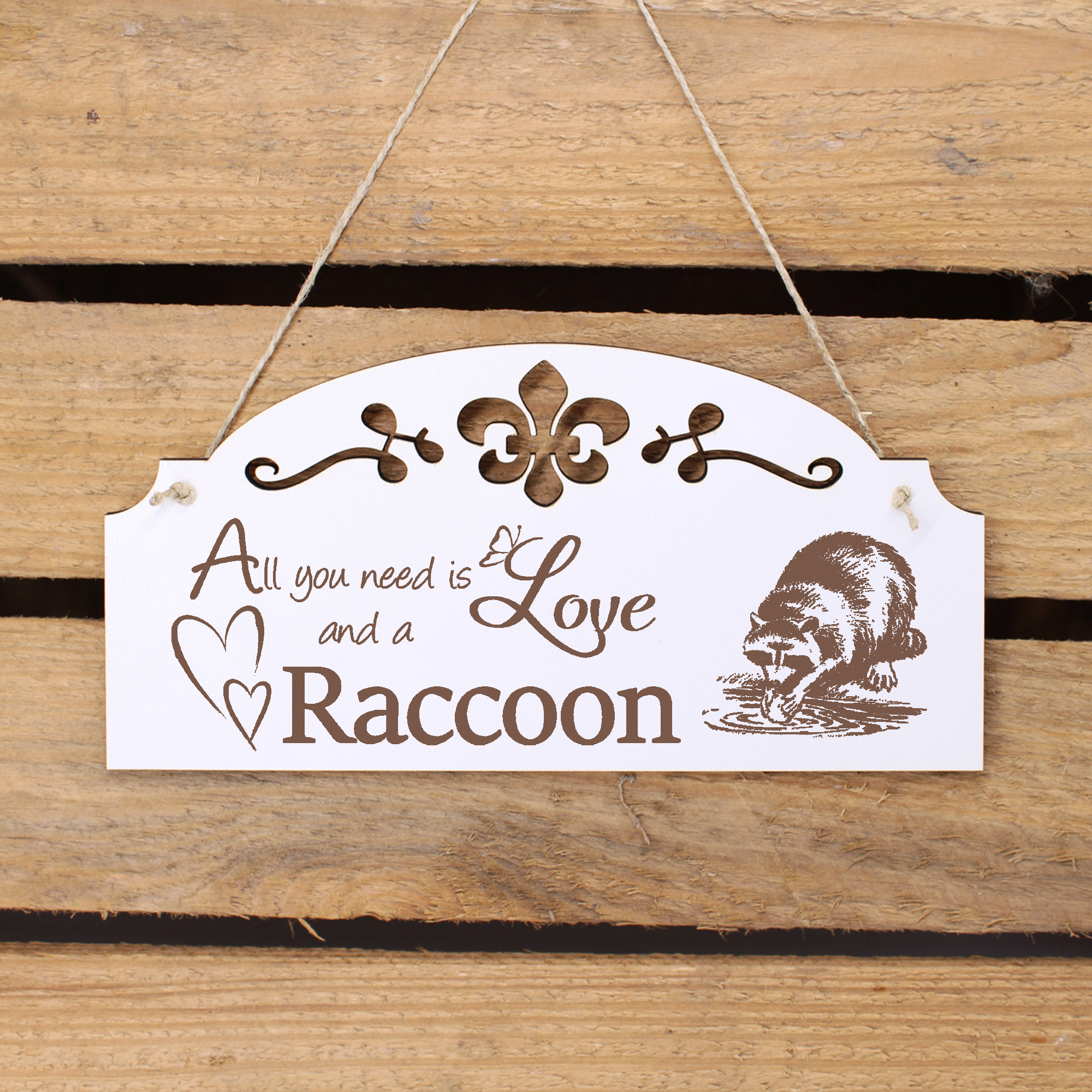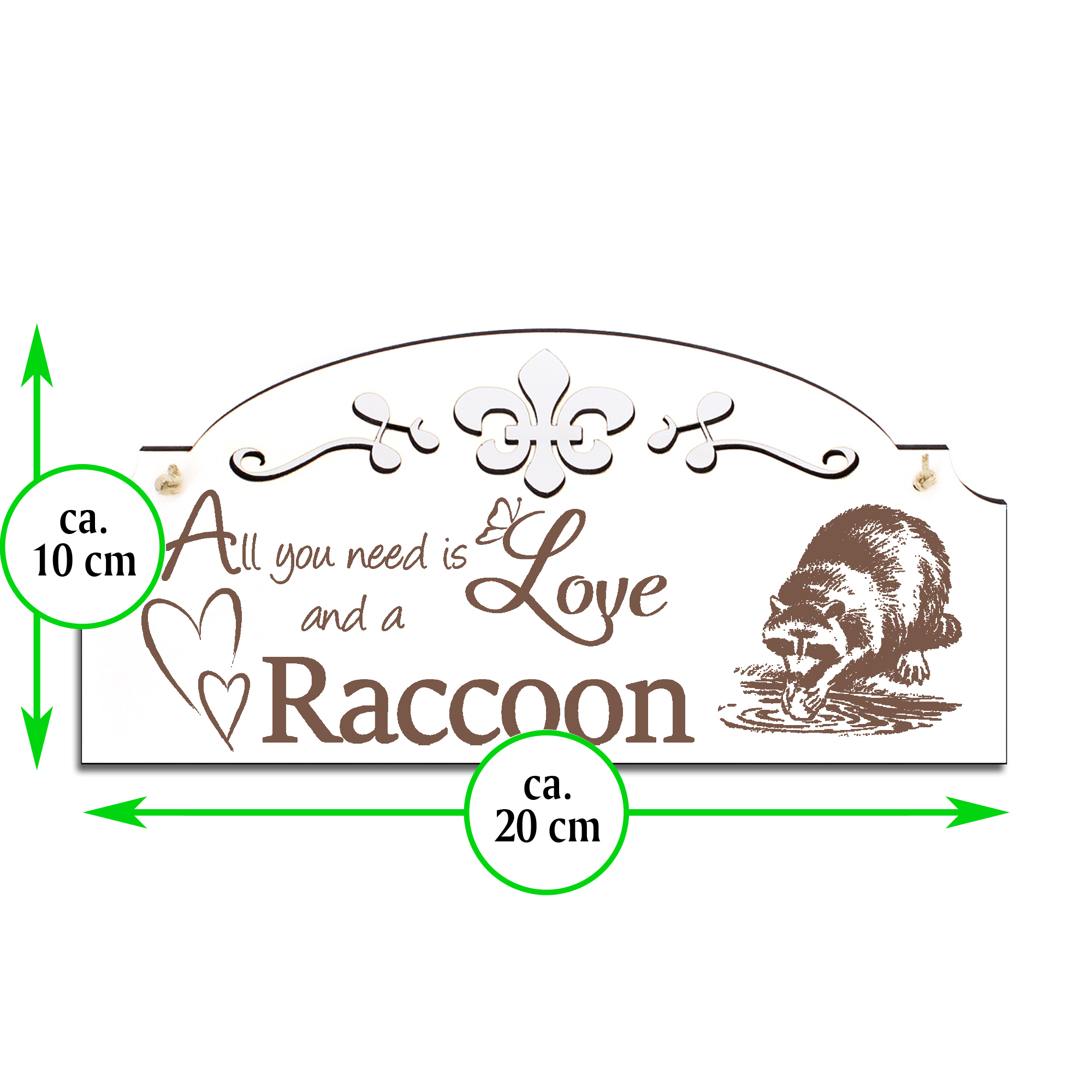 Schild Waschbär Deko 20x10cm - All you need is Love and a Raccoon - Holz