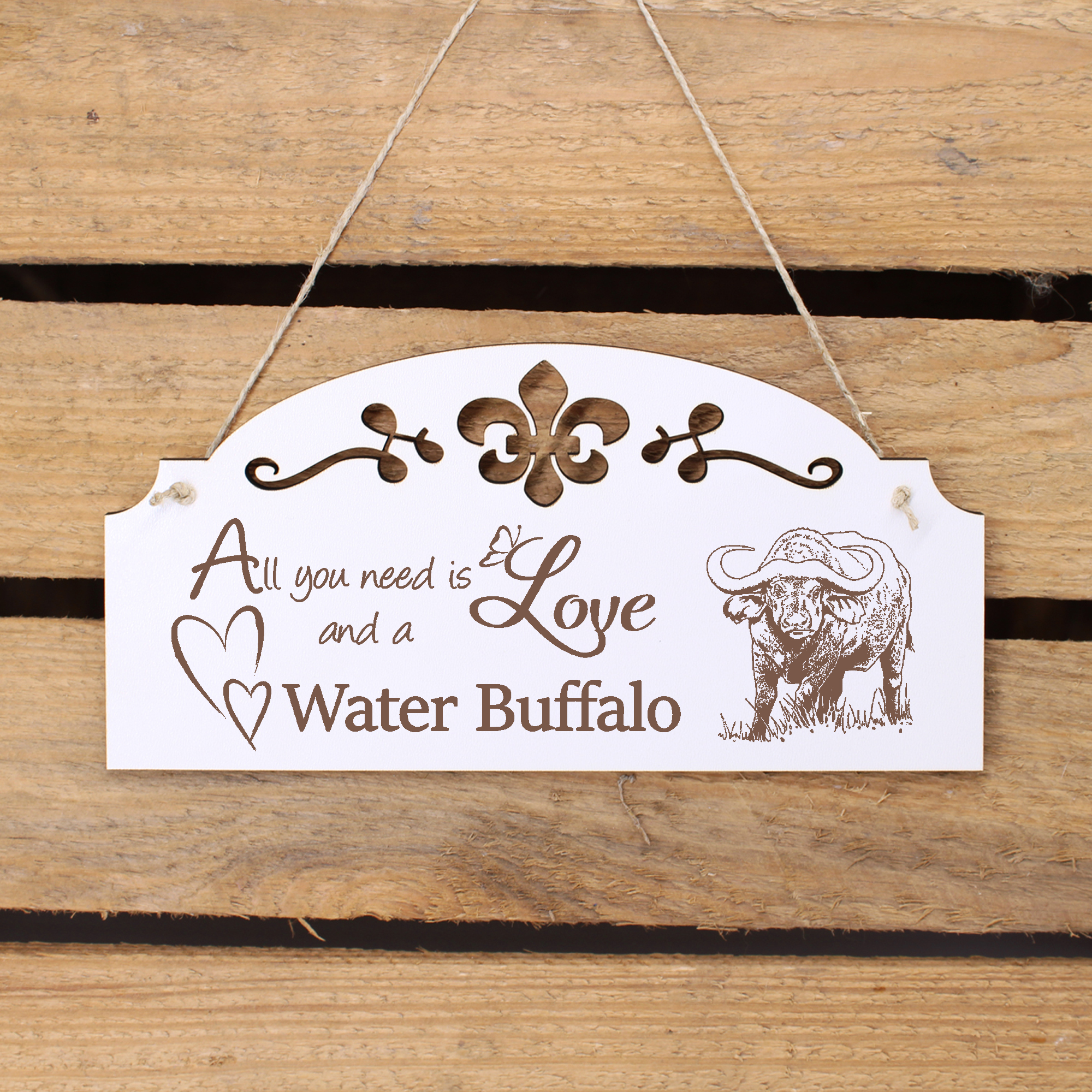- WANDDEKO: schöne Dekoration im Retro oder Vintage Stil mit dem Spruch - All you need is Love and a Water Buffalo - die Türdeko ist nicht nur lustig, sondern auch modern