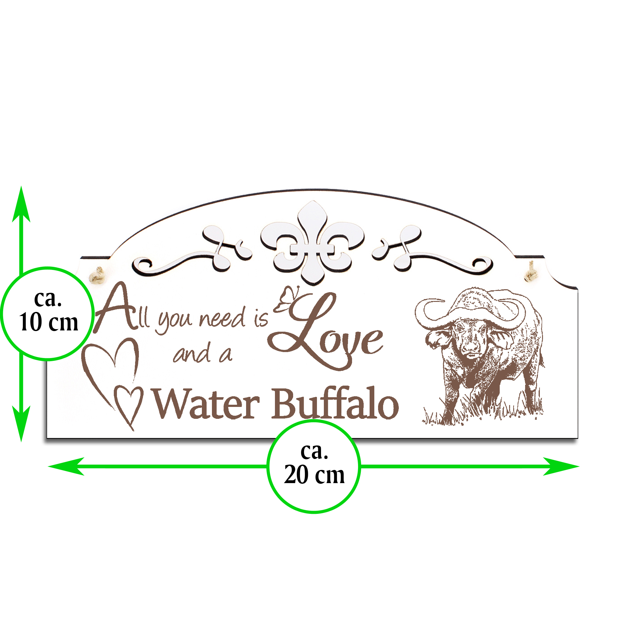 Schild Wasserbüffel Deko 20x10cm - All you need is Love and a Water Buffalo - Holz