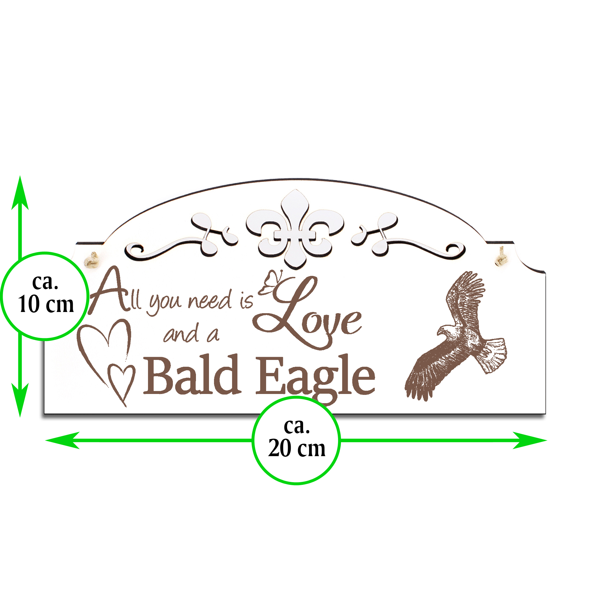 Schild Weisskopfseeadler Deko 20x10cm - All you need is Love and a Bald Eagle - Holz