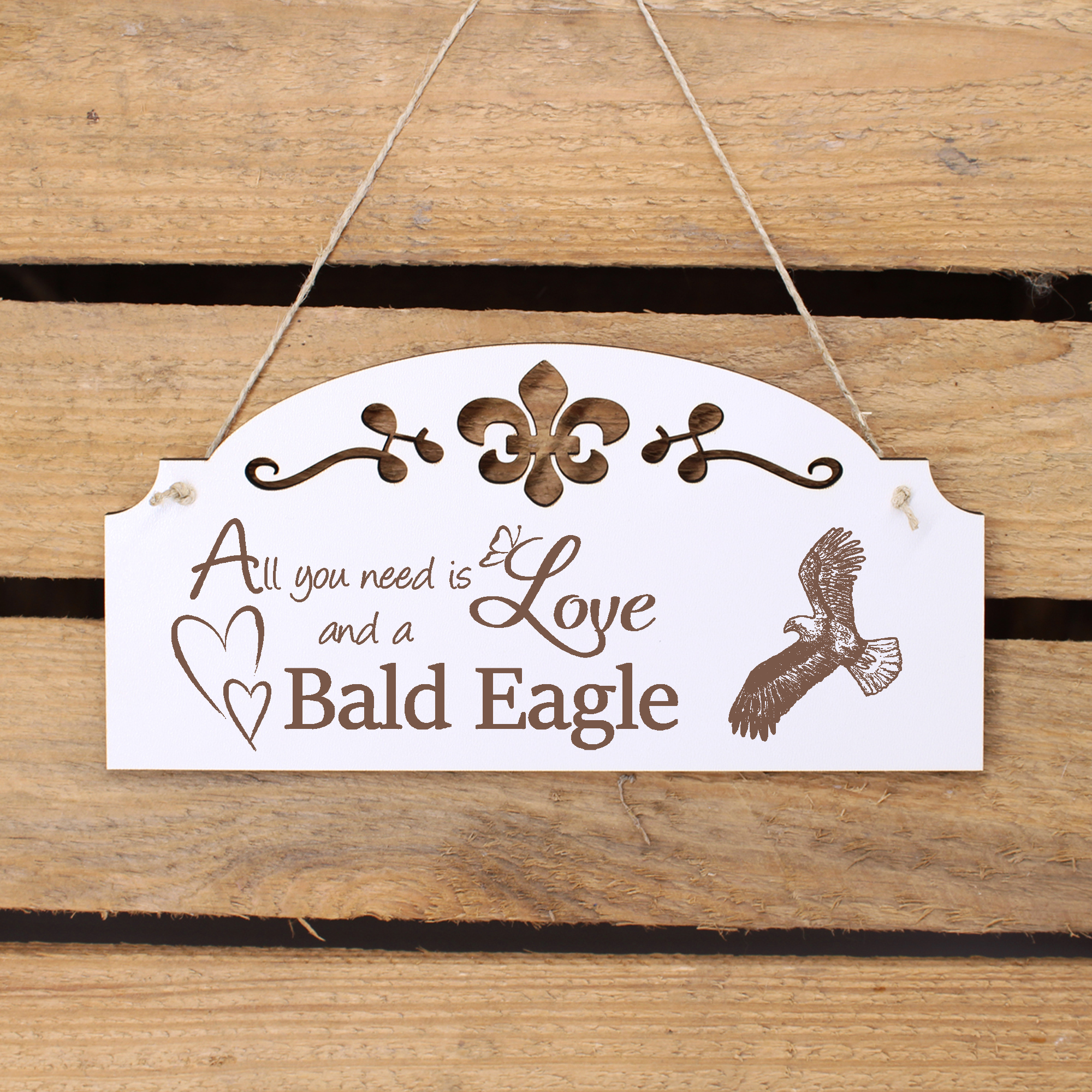 - WANDDEKO: schöne Dekoration im Retro oder Vintage Stil mit dem Spruch - All you need is Love and a Bald Eagle - die Türdeko ist nicht nur lustig, sondern auch modern