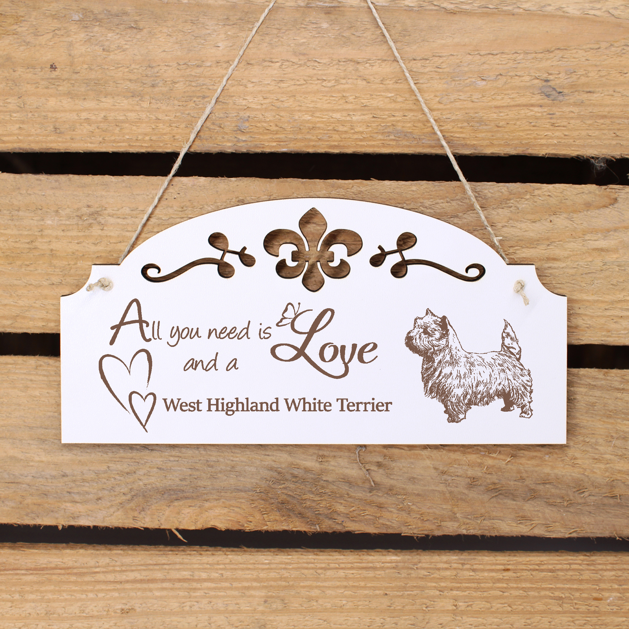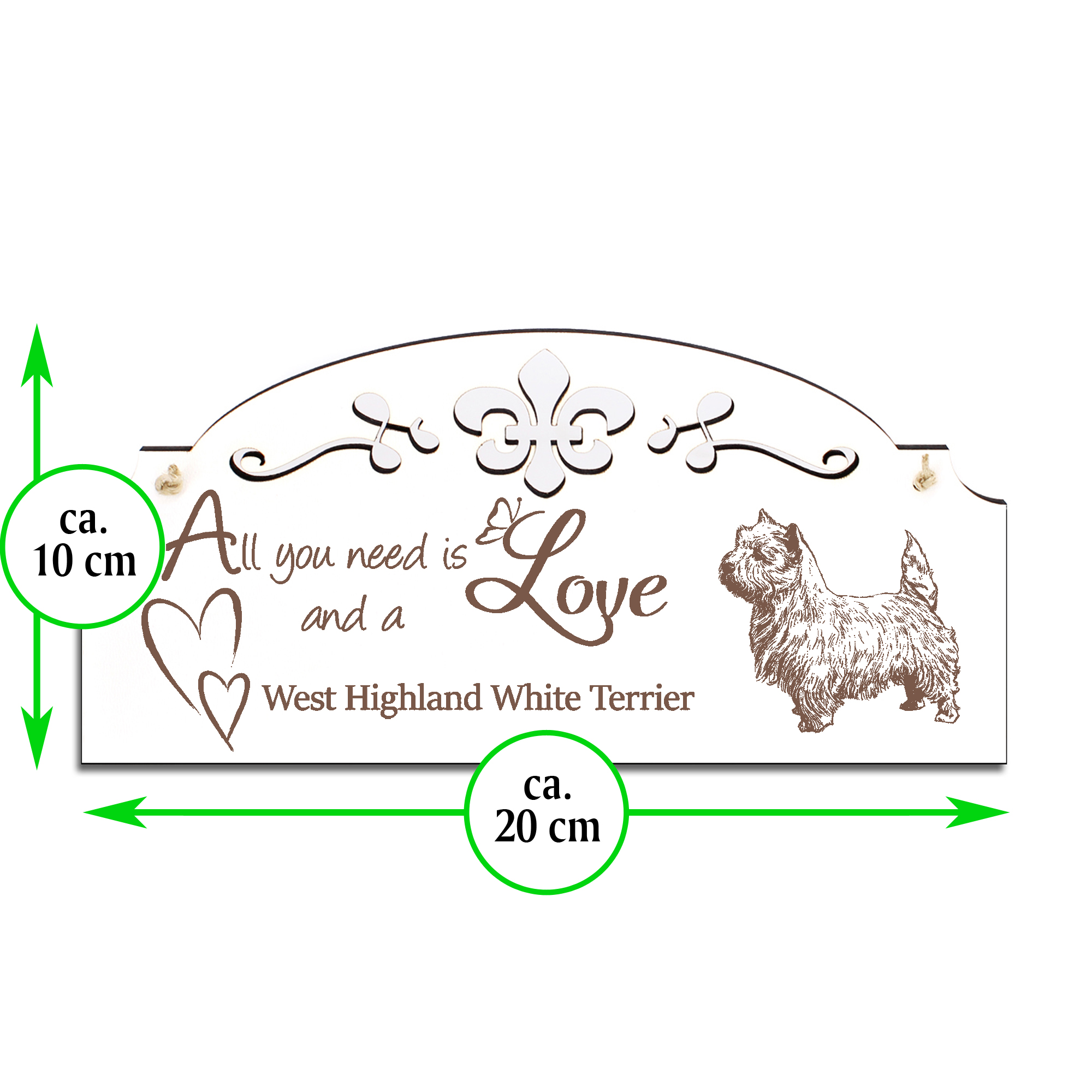 - WANDDEKO: schöne Dekoration im Retro oder Vintage Stil mit dem Spruch - All you need is Love and a West Highland White Terrier - die Türdeko ist nicht nur lustig, sondern auch modern