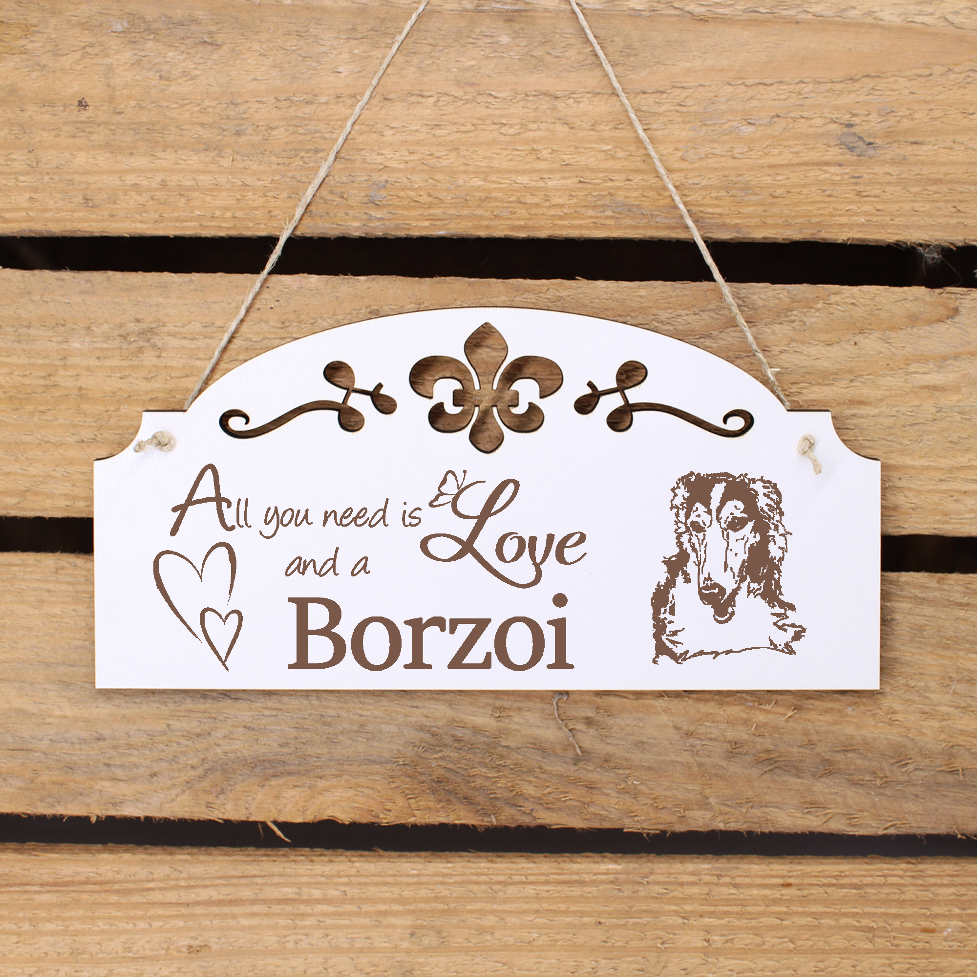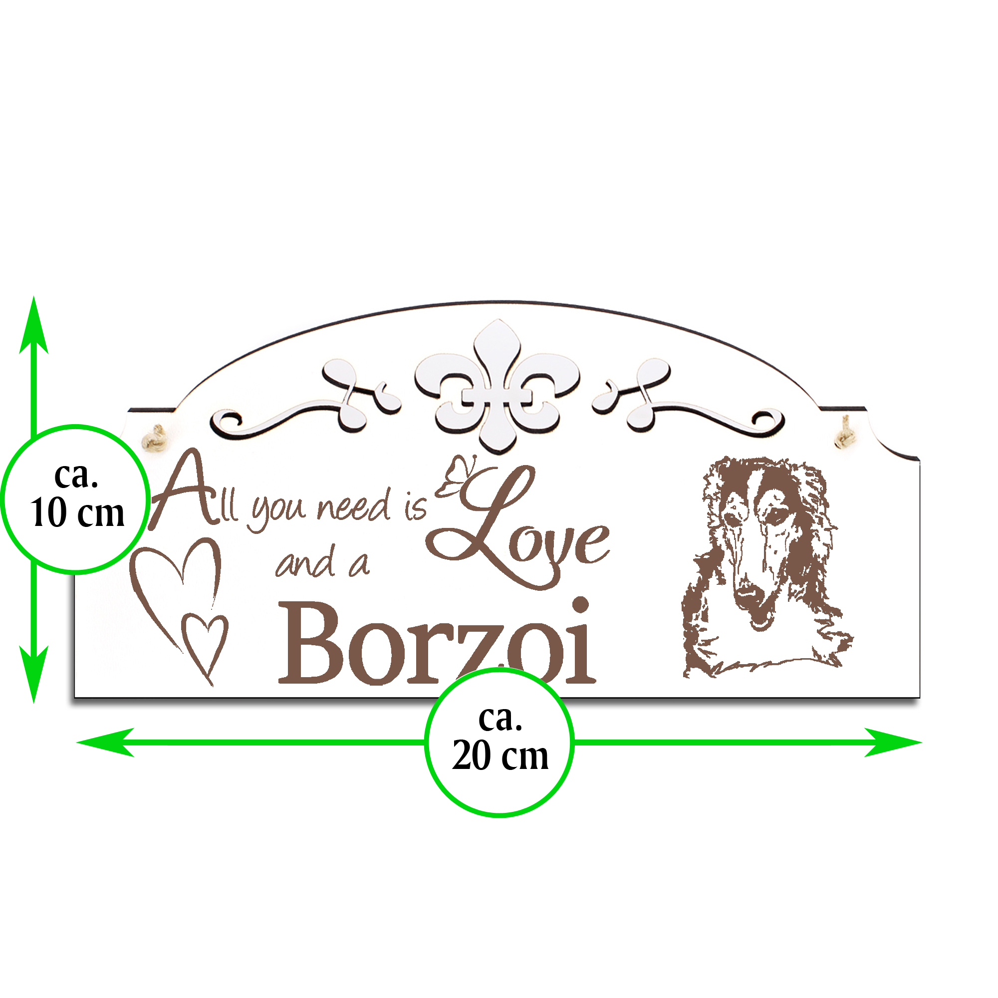Schild Windhund Barsoi Deko 20x10cm - All you need is Love and a Borzoi - Holz