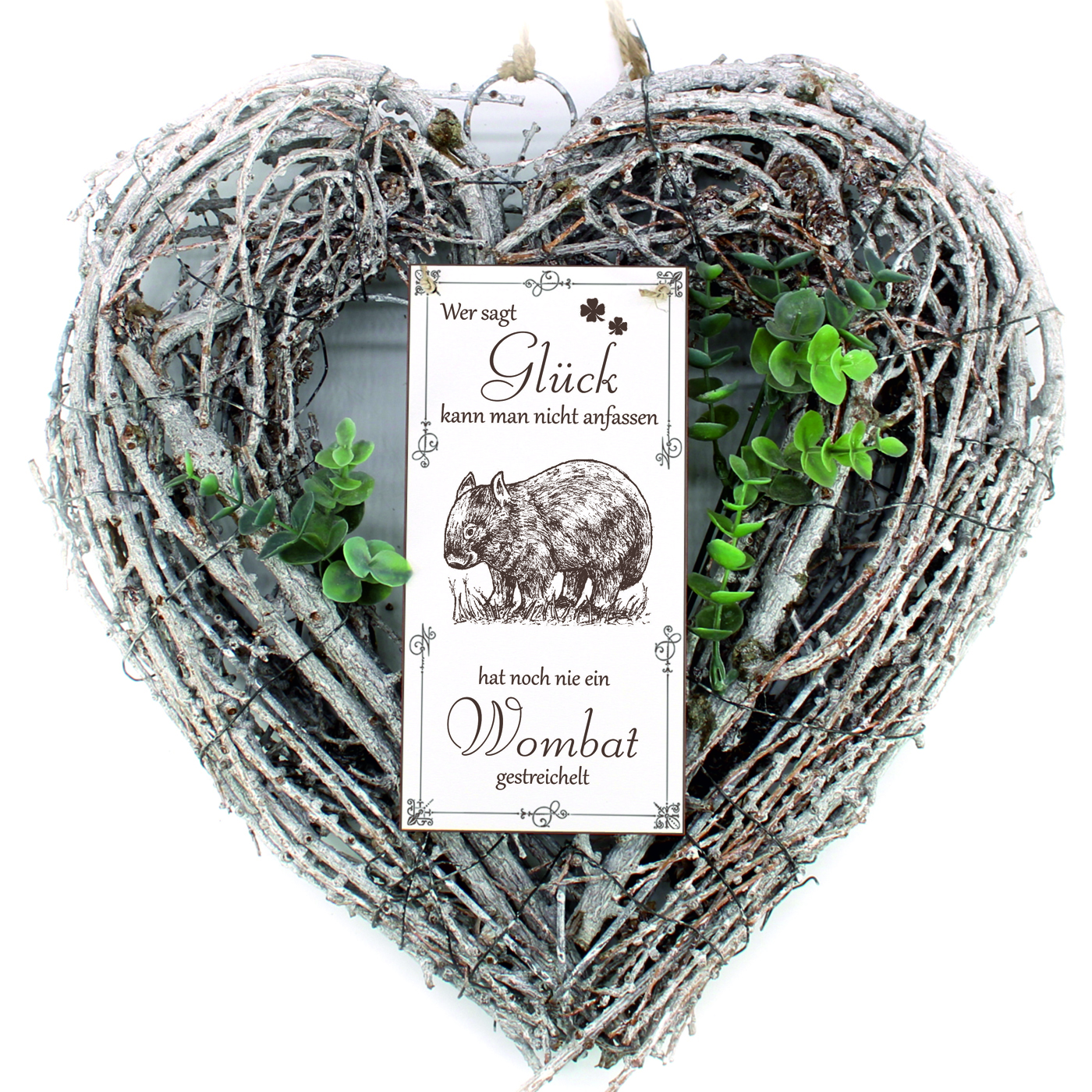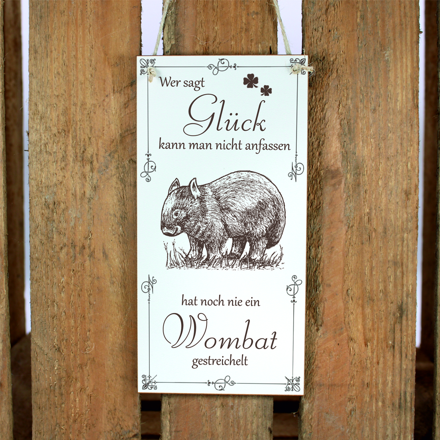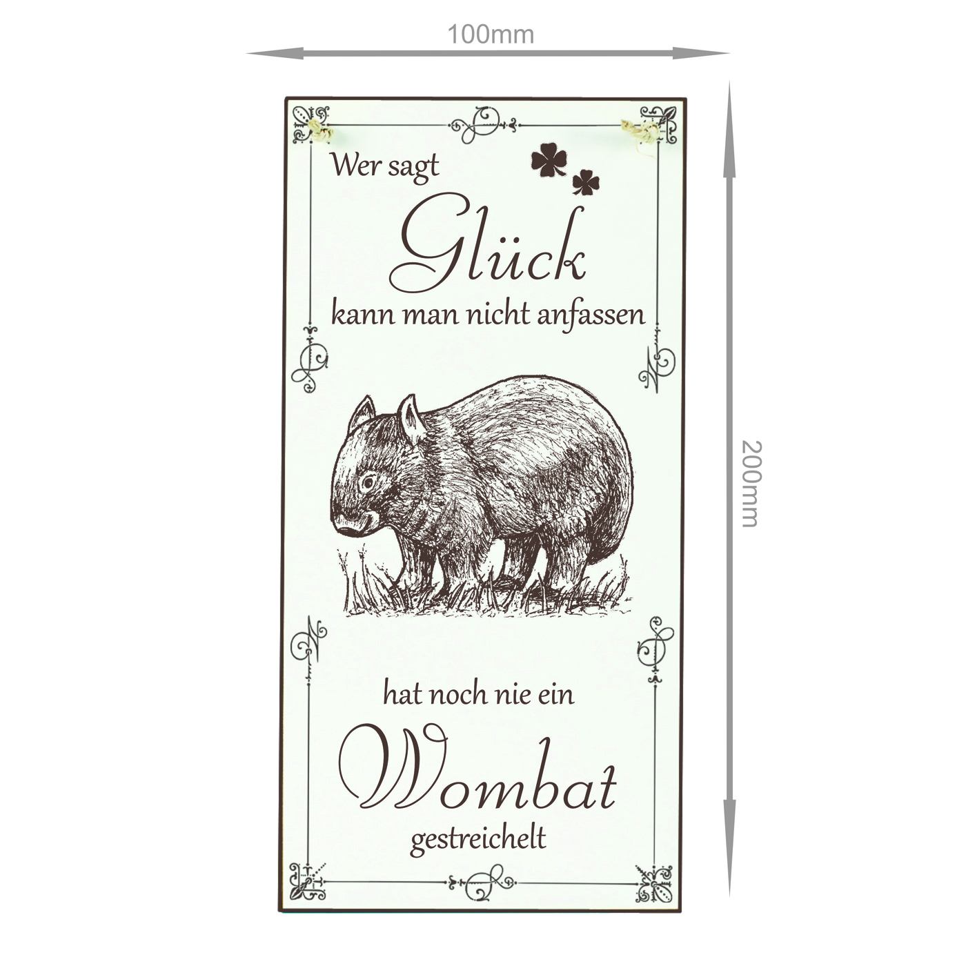 Schild Wombat Glück kann man streicheln Spruch - Vintage Dekoschild Tiere Türschild 10 x 20 cm