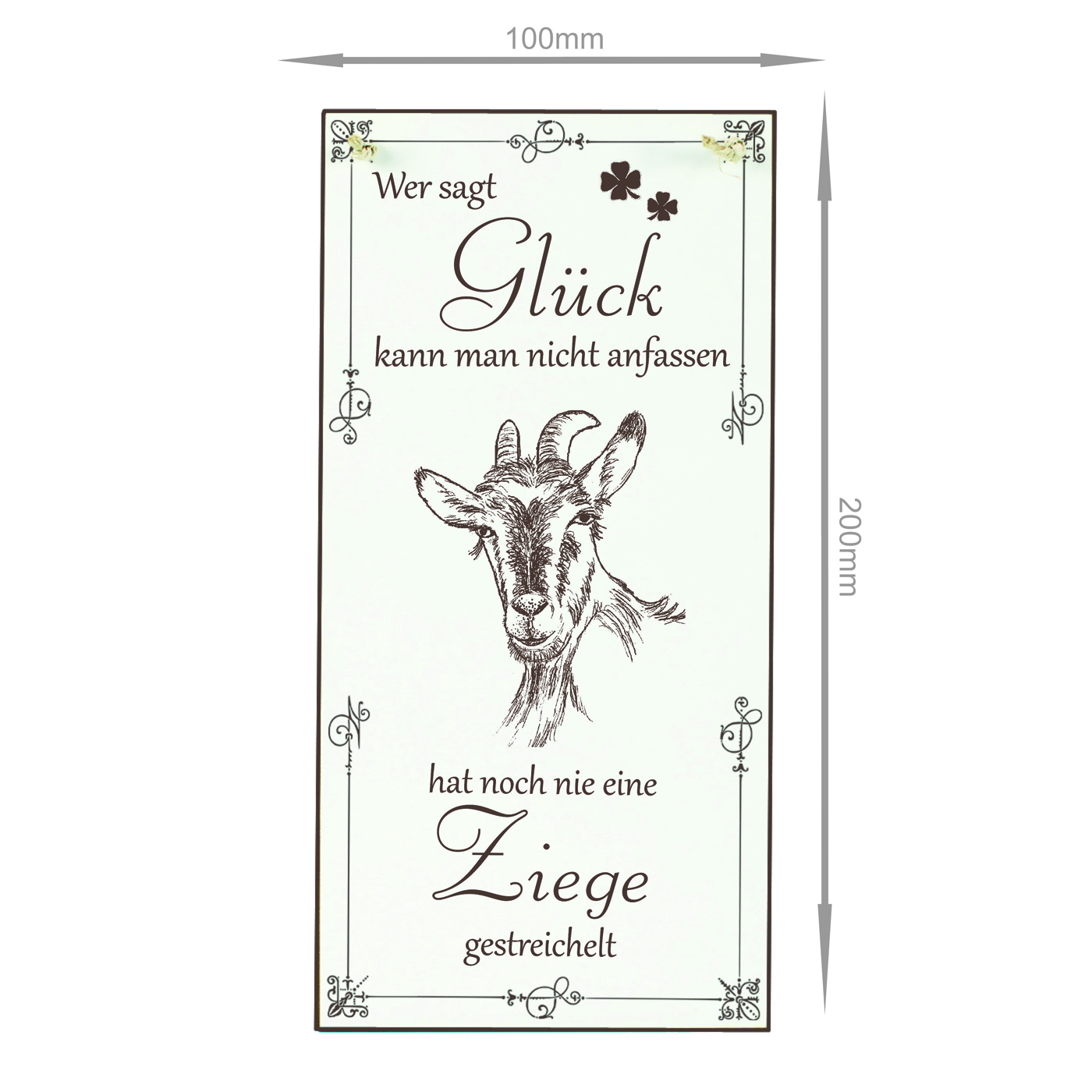 Schild Ziege Glück kann man streicheln Spruch - Vintage Dekoschild Tiere Türschild 10 x 20 cm