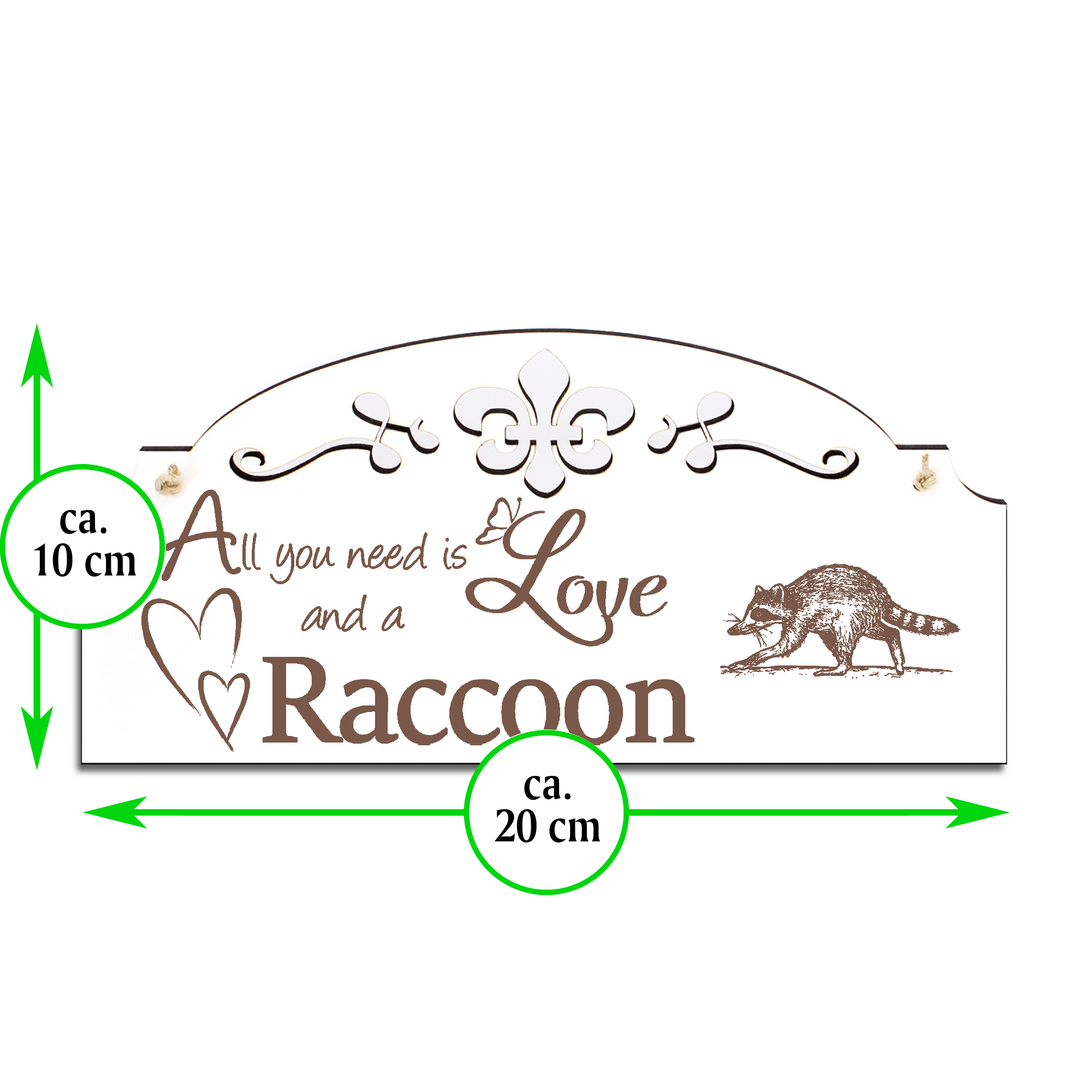 Schild gehender Waschbär Deko 20x10cm - All you need is Love and a Raccoon - Holz