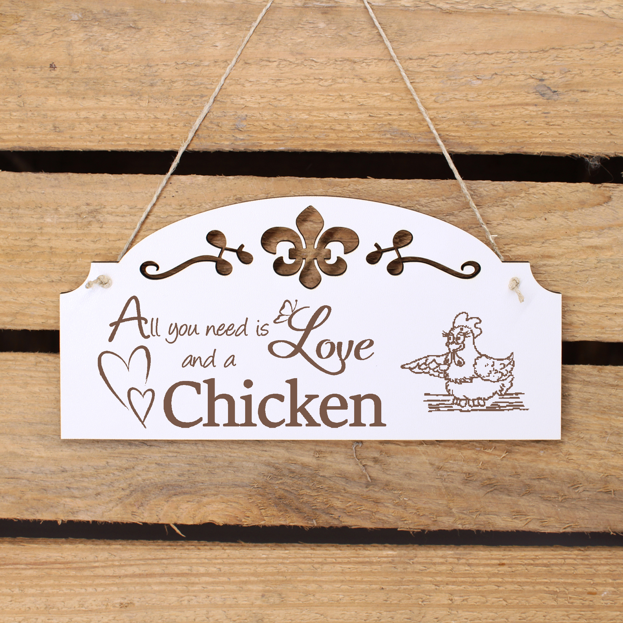 Schild niedliche Henne Deko 20x10cm - All you need is Love and a Chicken - Holz