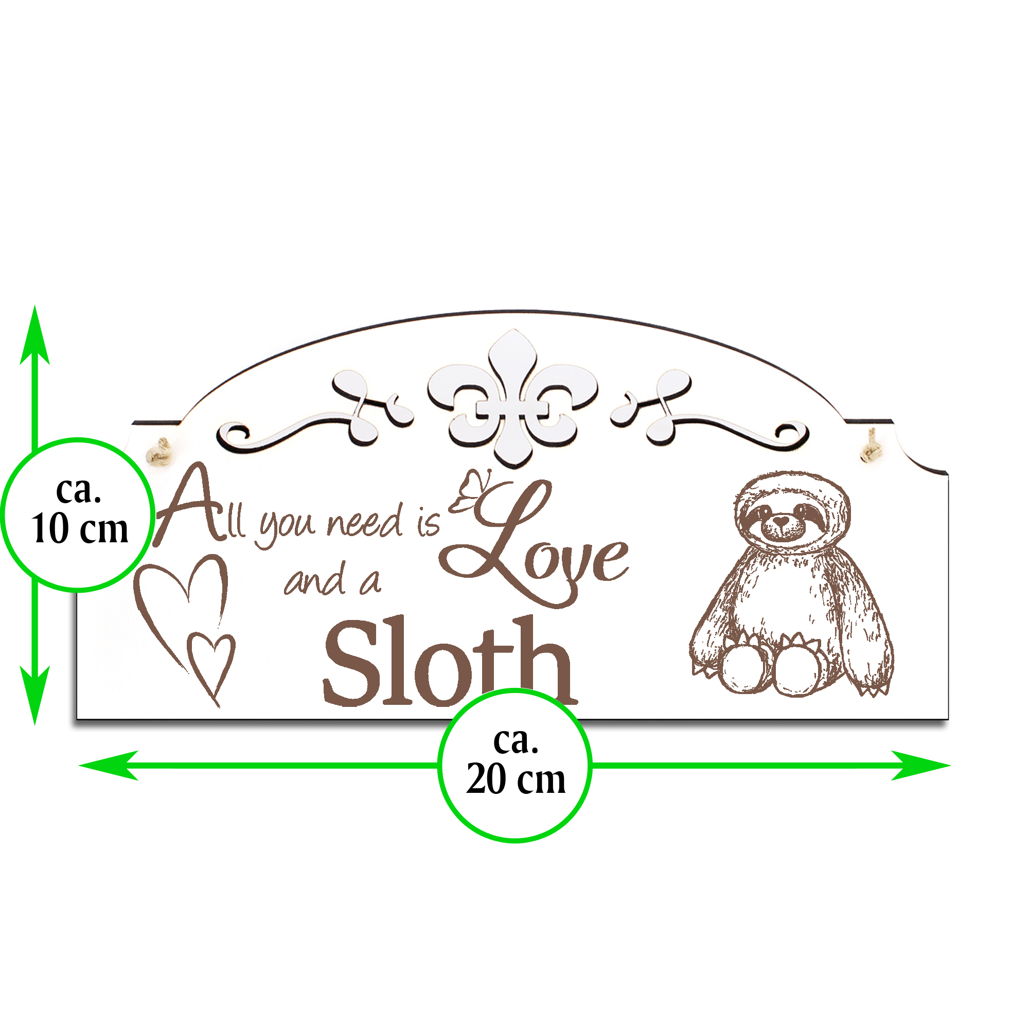 Schild niedlicher Faultier Teddy Deko 20x10cm - All you need is Love and a Sloth - Holz