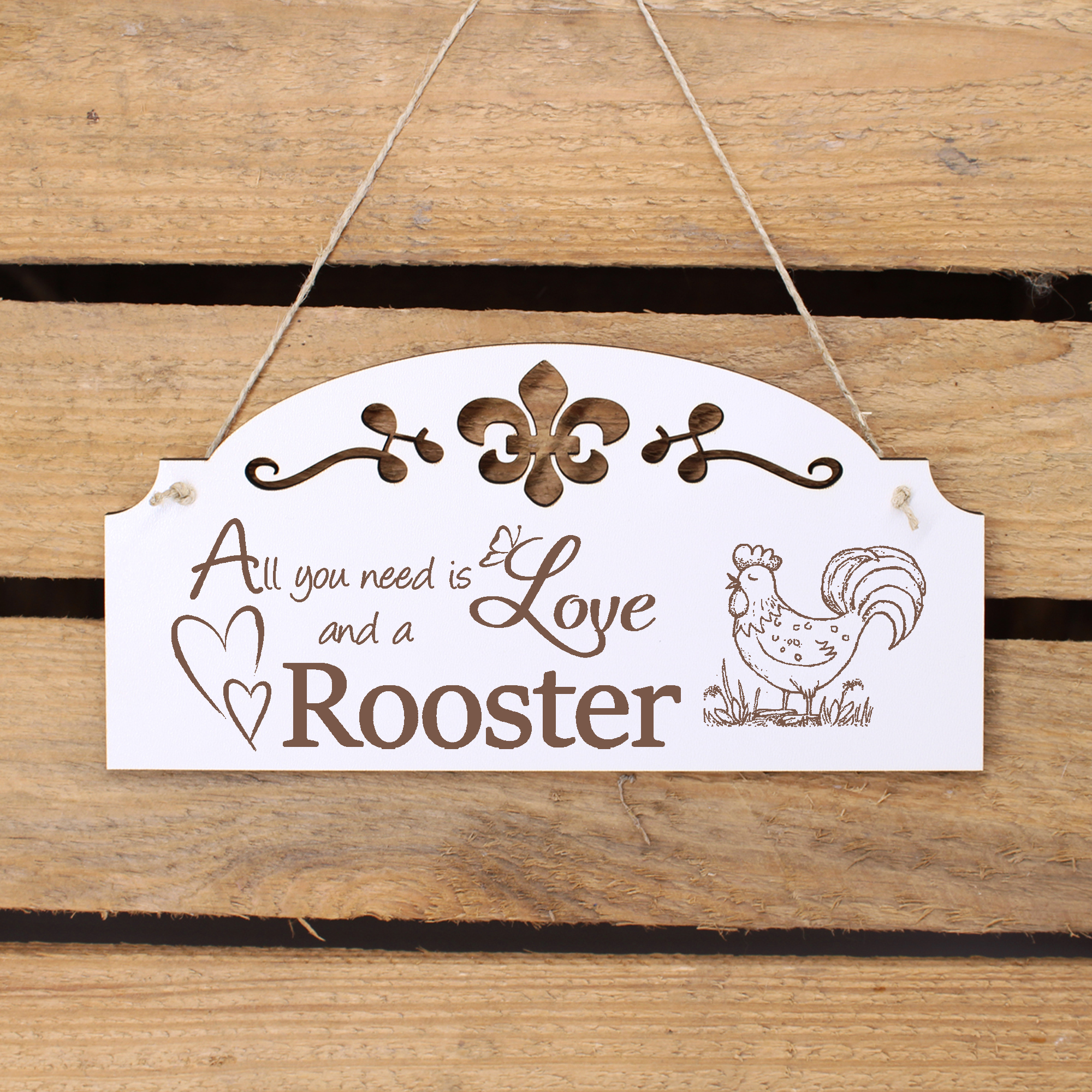 - WANDDEKO: schöne Dekoration im Retro oder Vintage Stil mit dem Spruch - All you need is Love and a Rooster - die Türdeko ist nicht nur lustig, sondern auch modern
