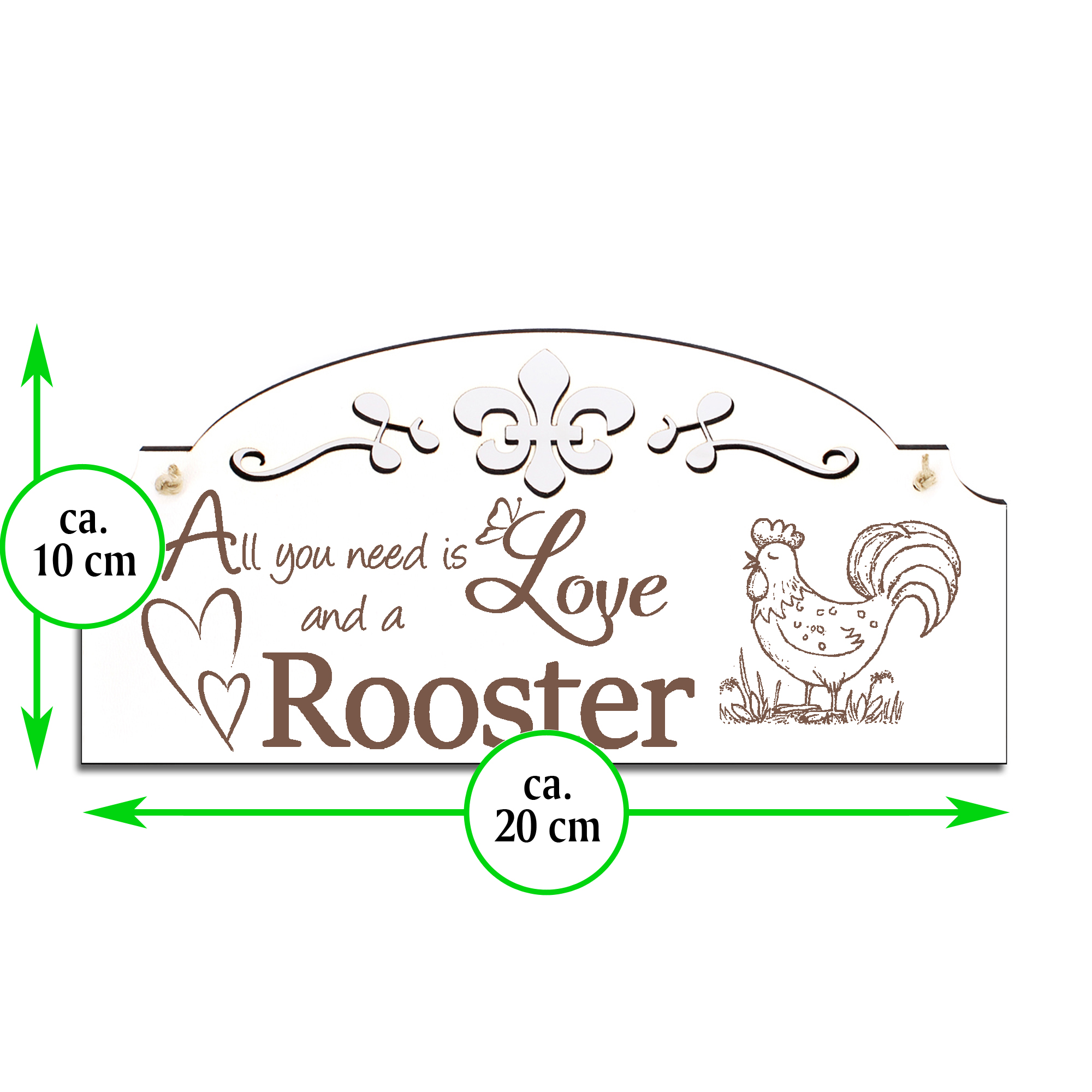 Schild niedlicher Hahn Deko 20x10cm - All you need is Love and a Rooster - Holz