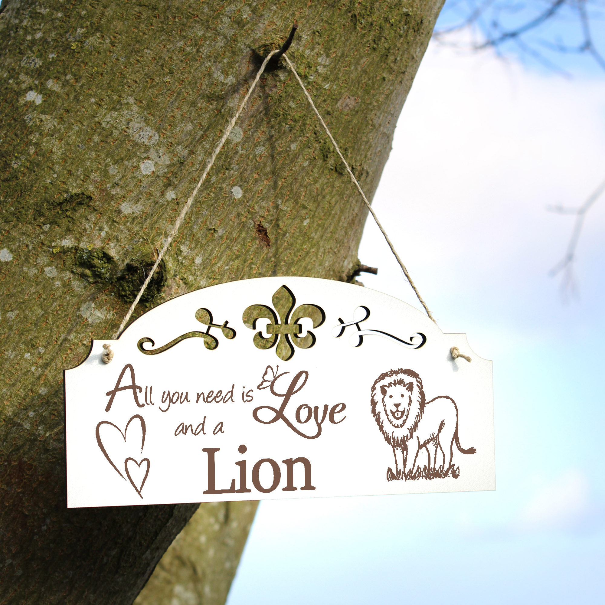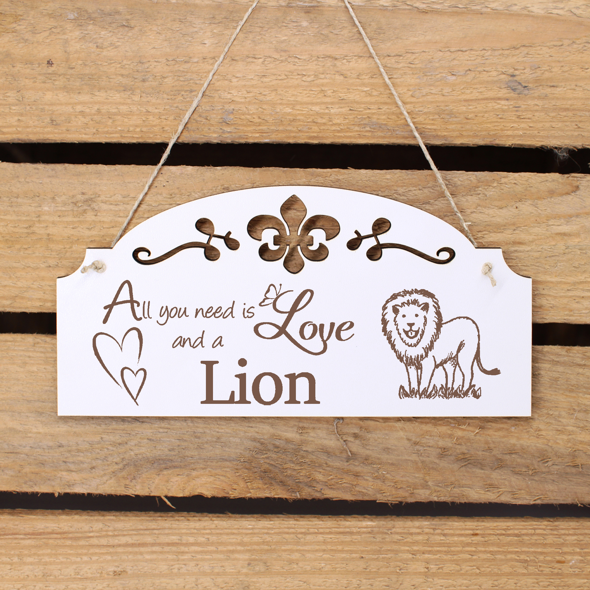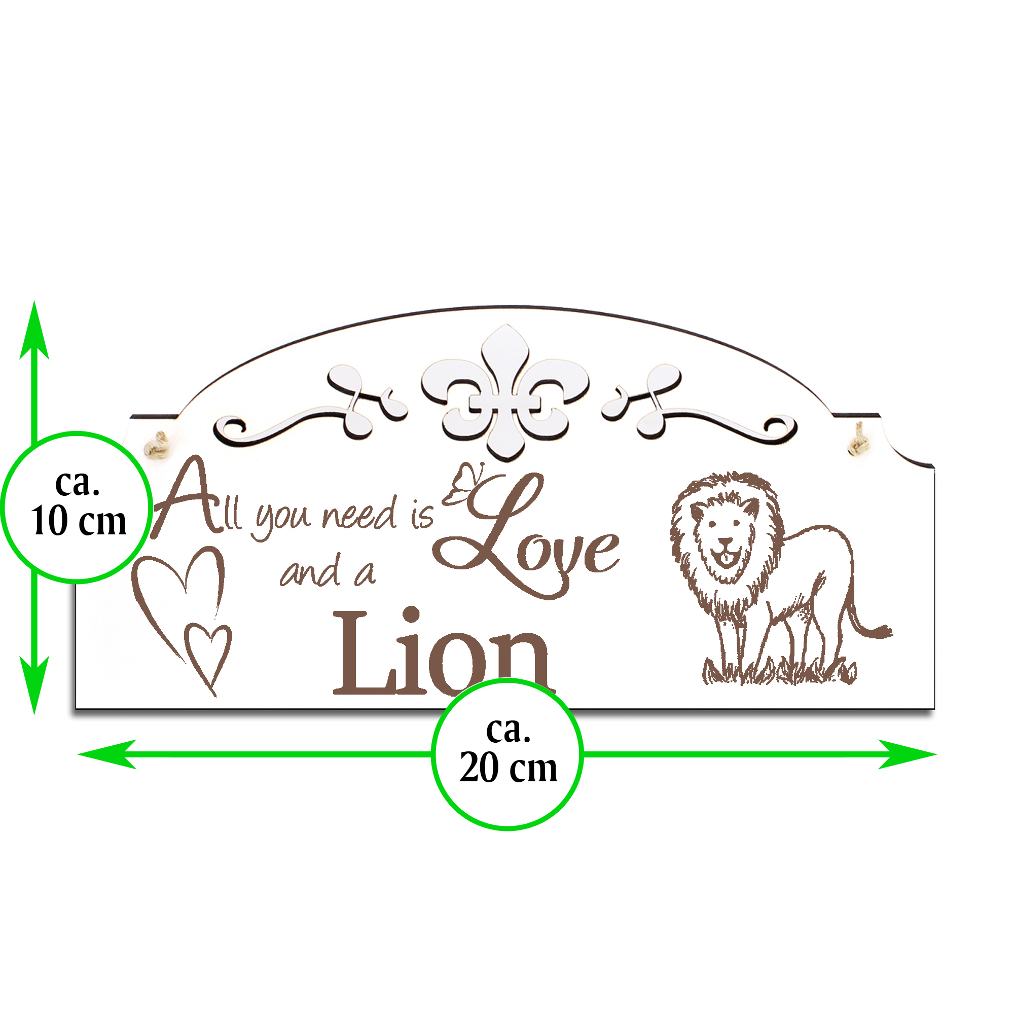 Schild niedlicher Löwe Deko 20x10cm - All you need is Love and a Lion - Holz