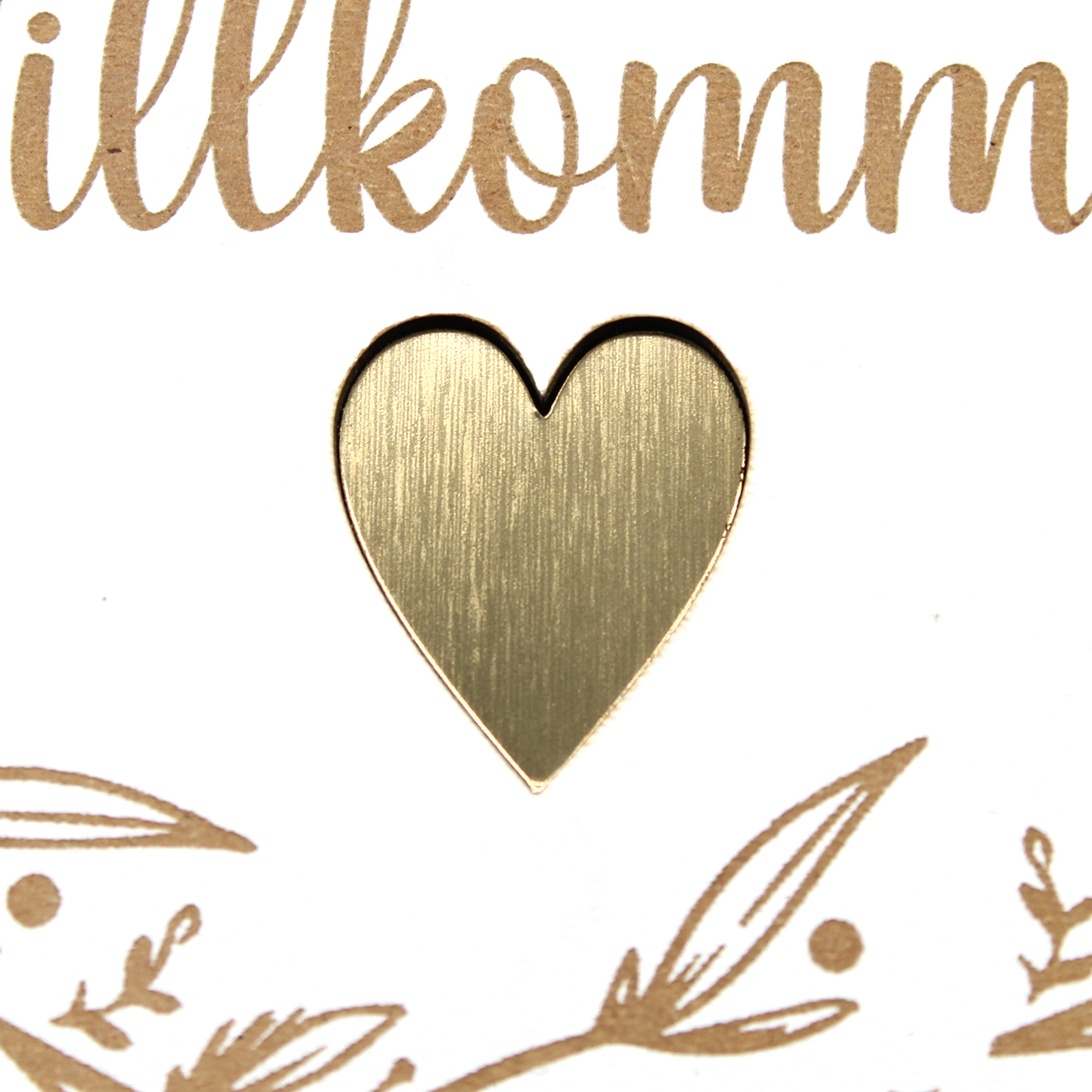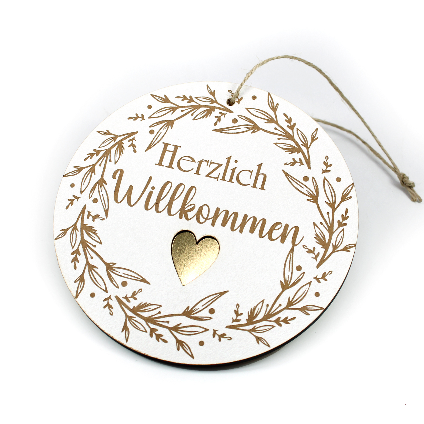Schild rund Herzlich Willkommen mit Motiv Vintage Kranz und goldfarbenem Herz Ornament Ø 15 cm
