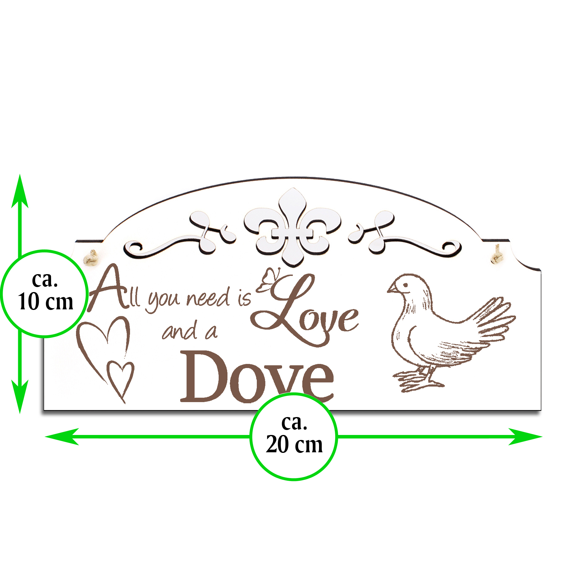 Schild sitzende Taube Deko 20x10cm - All you need is Love and a Dove - Holz