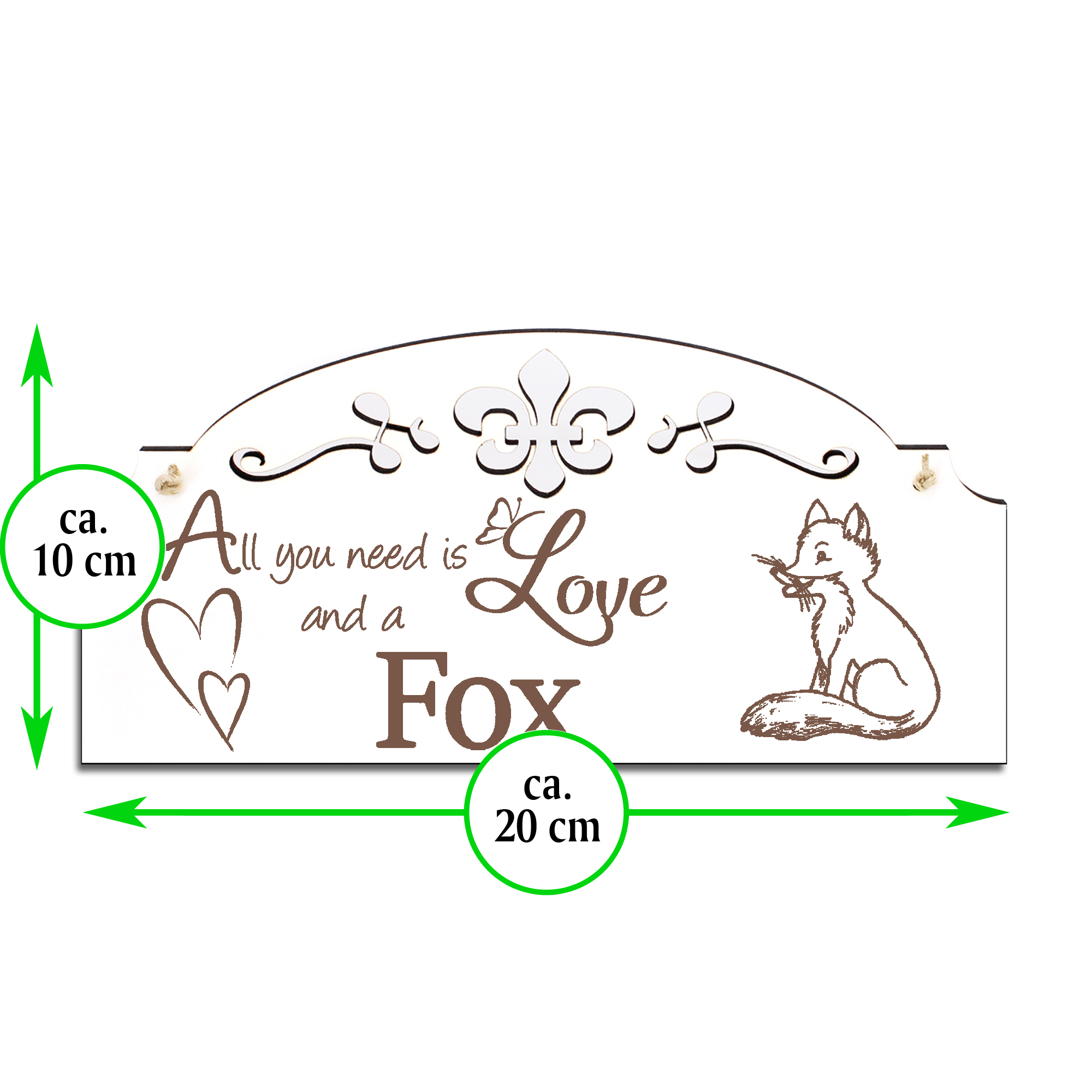 Schild sitzender Fuchs Deko 20x10cm - All you need is Love and a Fox - Holz
