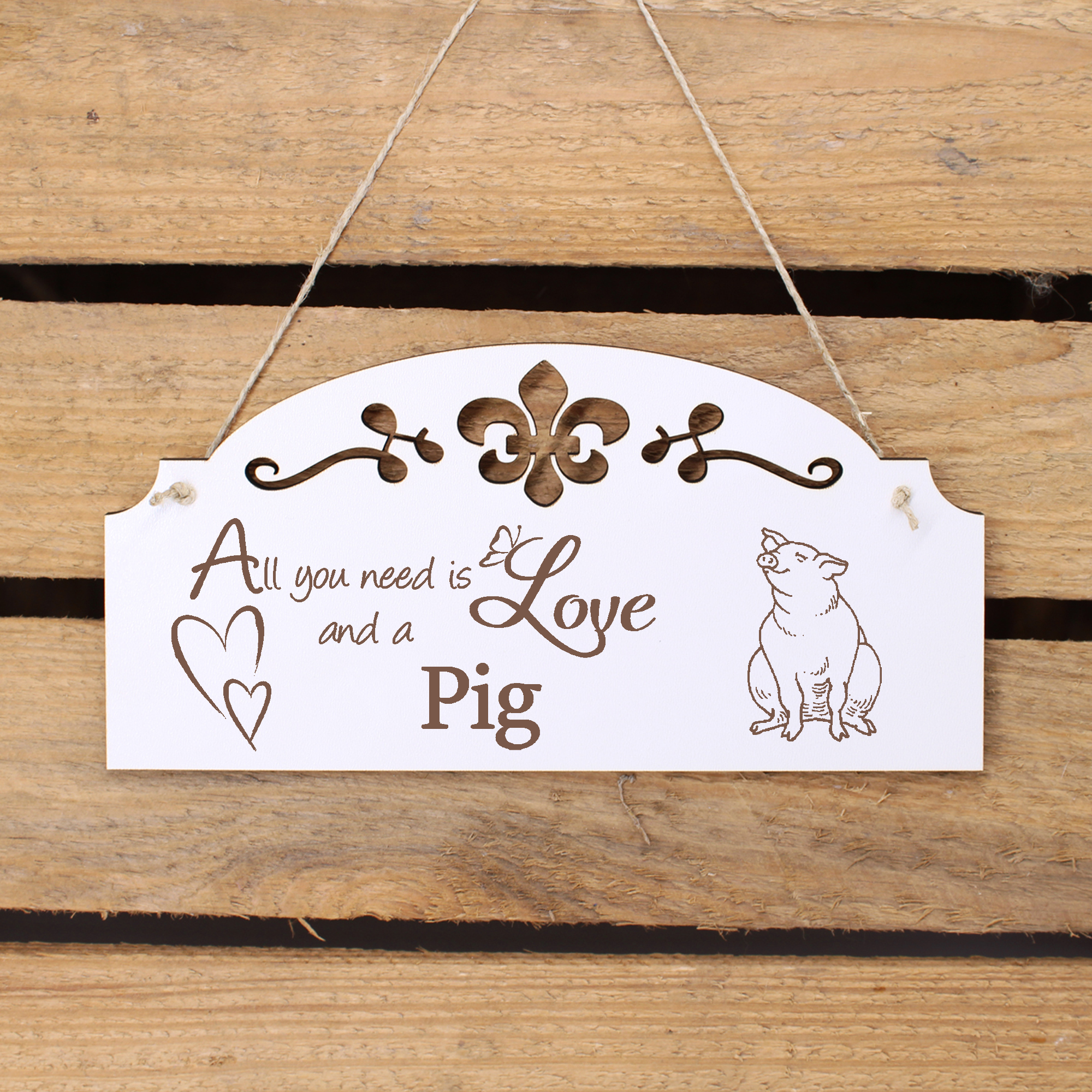 - WANDDEKO: schöne Dekoration im Retro oder Vintage Stil mit dem Spruch - All you need is Love and a Pig - die Türdeko ist nicht nur lustig, sondern auch modern