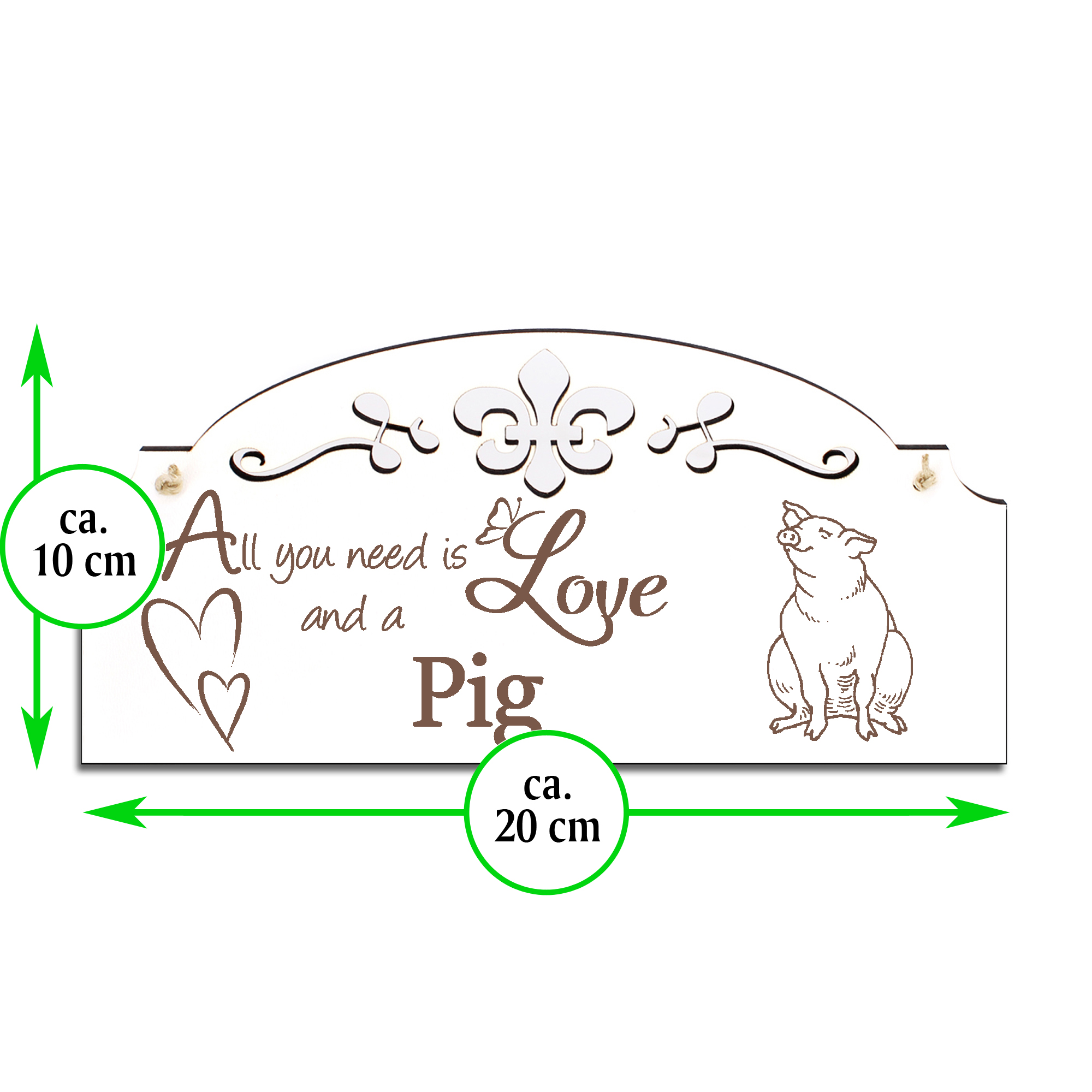 Schild sitzendes Schwein Deko 20x10cm - All you need is Love and a Pig - Holz