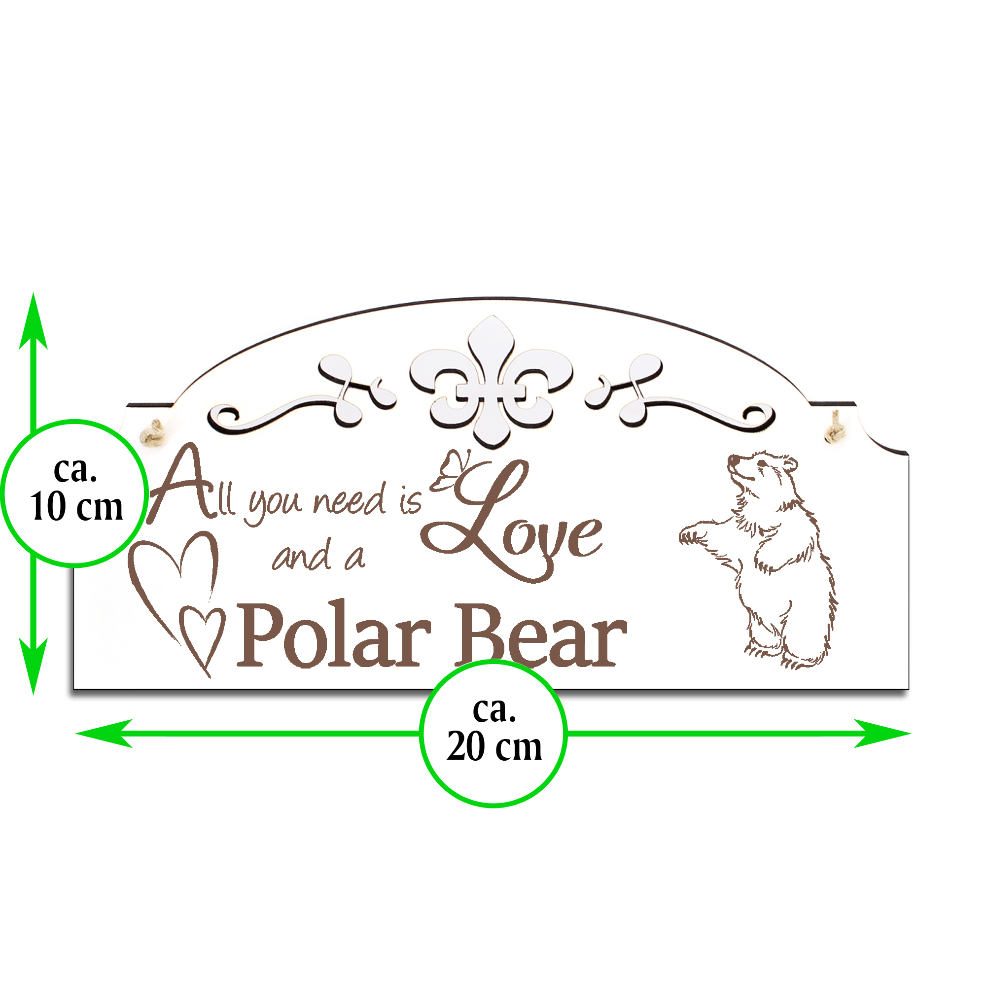 Schild stehender Eisbär Deko 20x10cm - All you need is Love and a Polar Bear - Holz