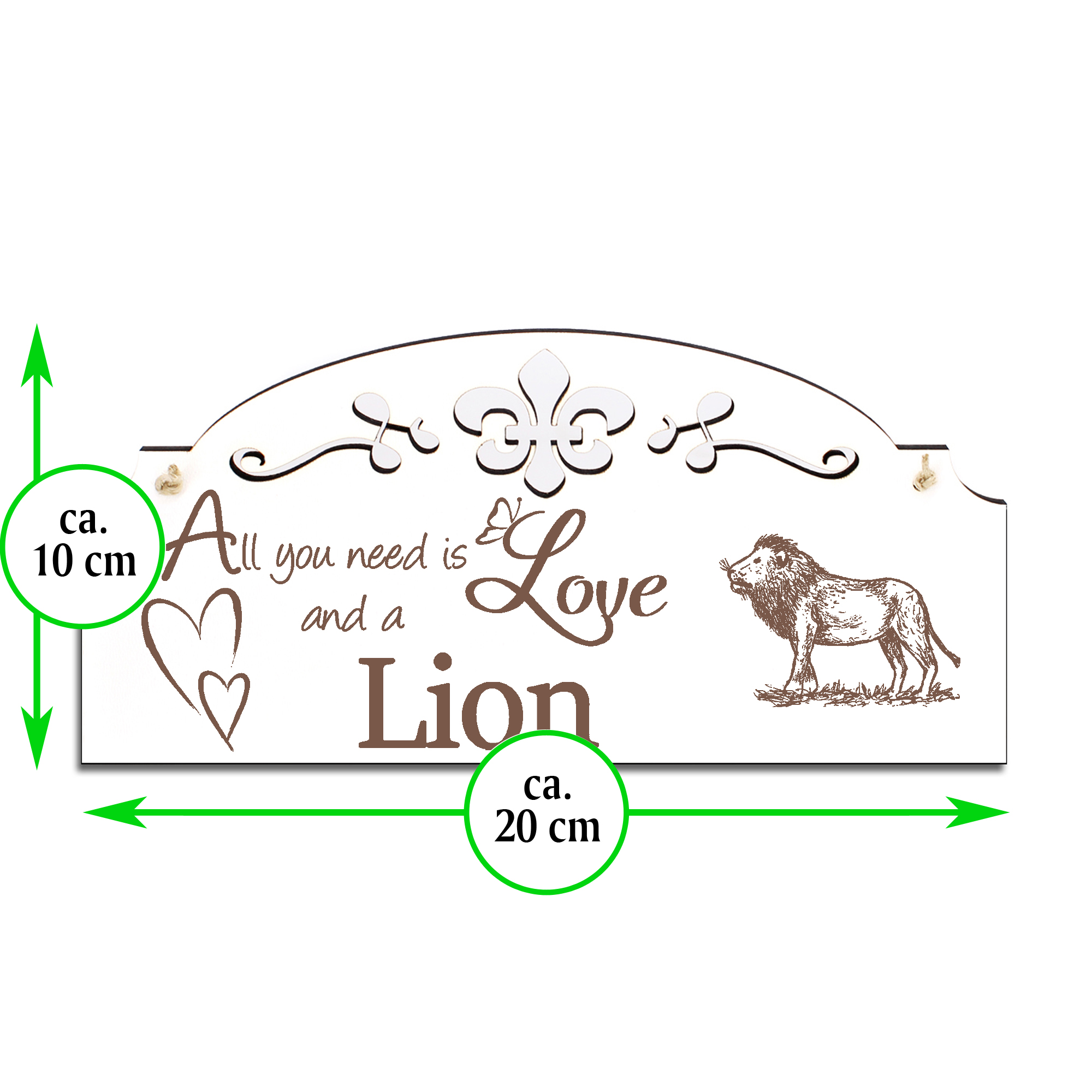 Produktinformationen "Schild stehender Löwe Deko 20x10cm - All you need is Love and a Lion - Holz"