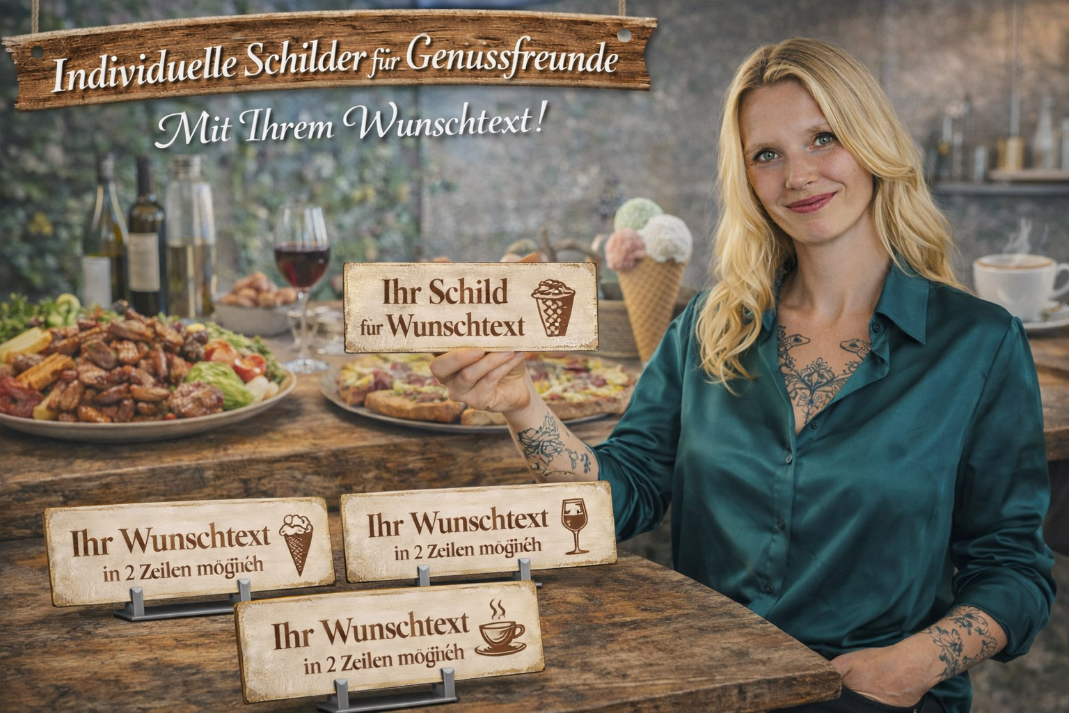Zusätzlich kann jedes Schild mit einem individuellen Wunschtext gestaltet werden. Ob Name, kurzer Spruch, Küchenhinweis, Barbezeichnung oder eine persönliche Botschaft – durch die Personalisierung entsteht ein einzigartiges Schild mit persönlichem Charakter.