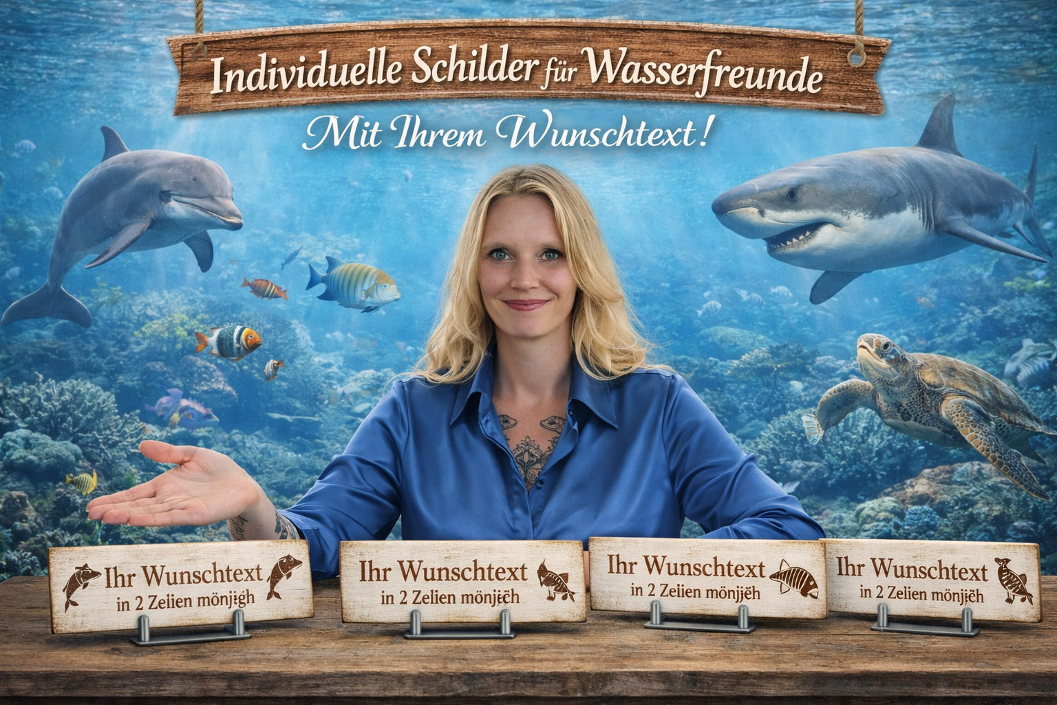 Die faszinierende Welt der Meere und Gewässer spiegelt sich in diesen gravierten HDF-Schildern im Format 15 × 5 cm wider. Durch die weiße Oberfläche des Materials und die kontrastreiche braune Gravur entsteht ein klares, dekoratives Design, das Motive und Text besonders schön hervorhebt.