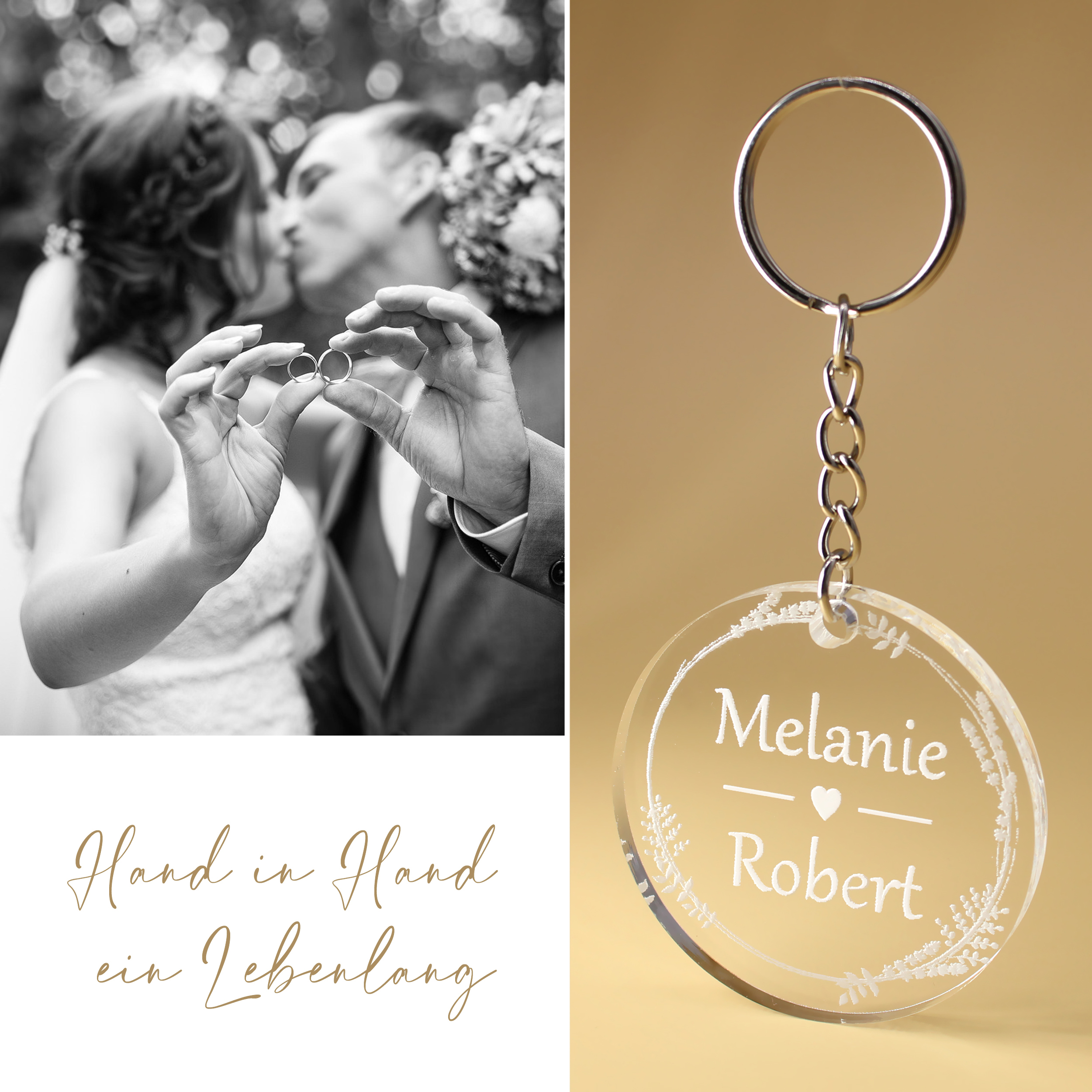 - Individuell gravierbar – Persönlich gestaltbar mit Namen, ideal für Brautpaare, Verlobte, Jahrestage oder als liebevolles Erinnerungsstück für besondere Momente.