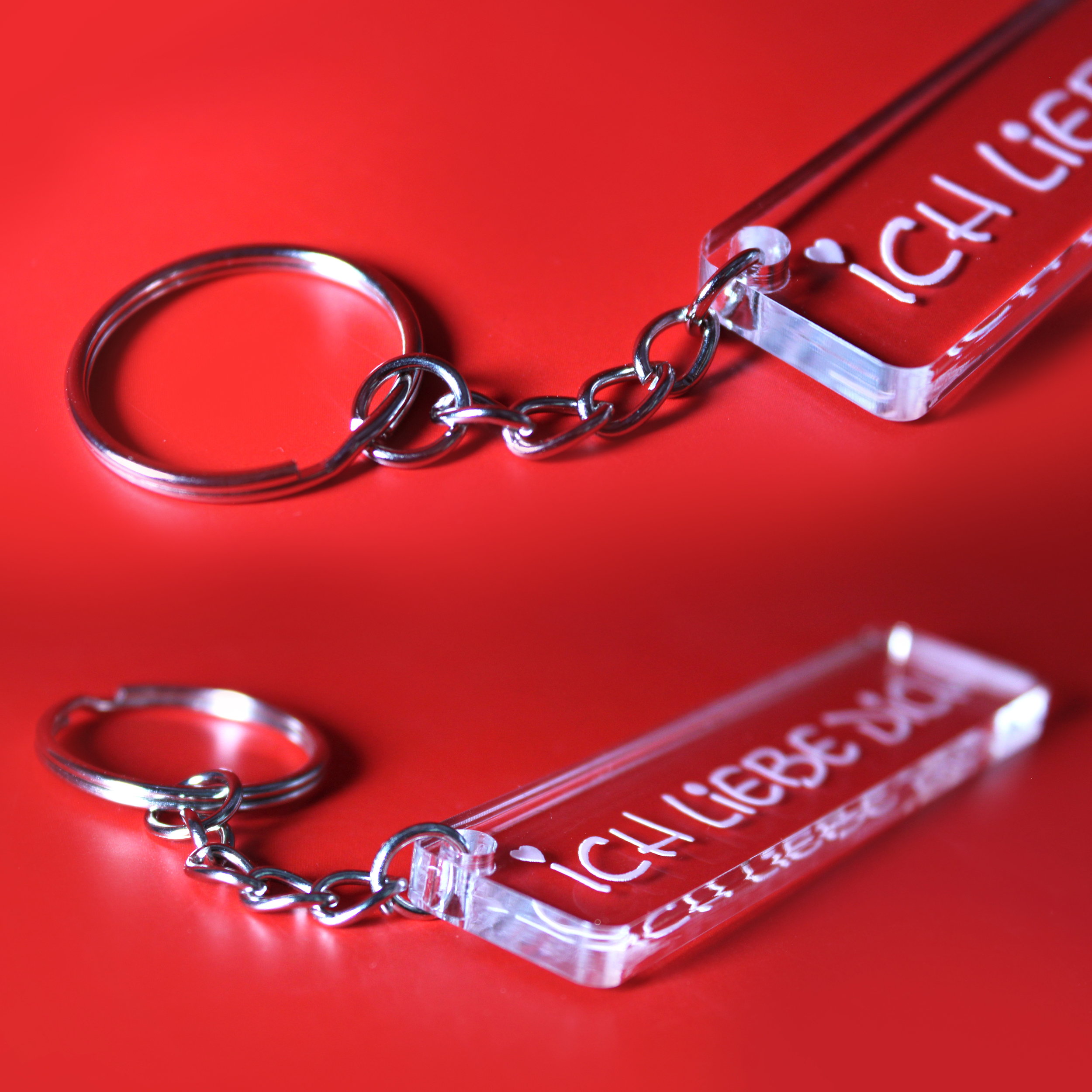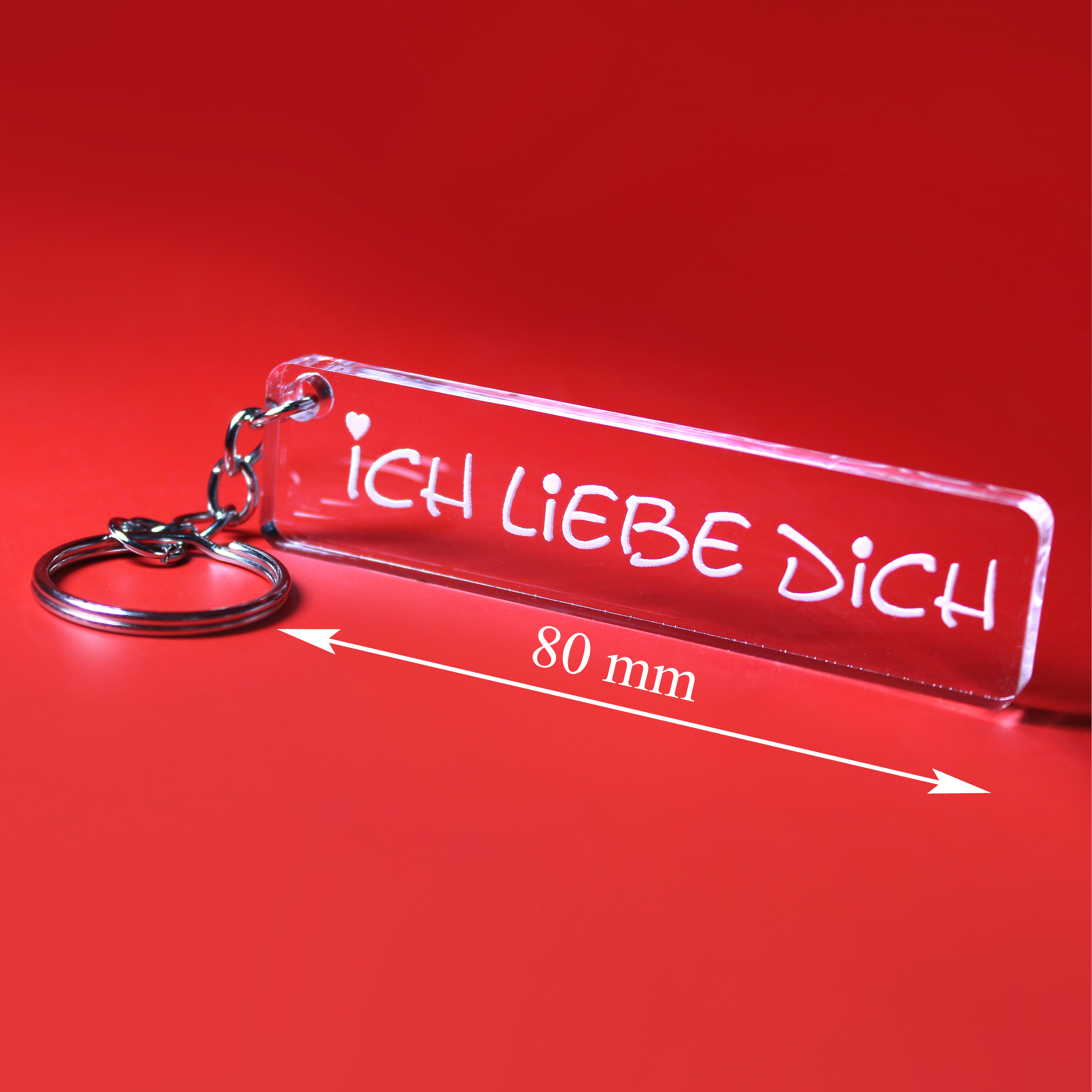 - Liebevolle Botschaft für jeden Tag: Acryl-Schlüsselanhänger mit der Gravur „Ich liebe dich“ als tägliche Erinnerung an Zuneigung und Wertschätzung.