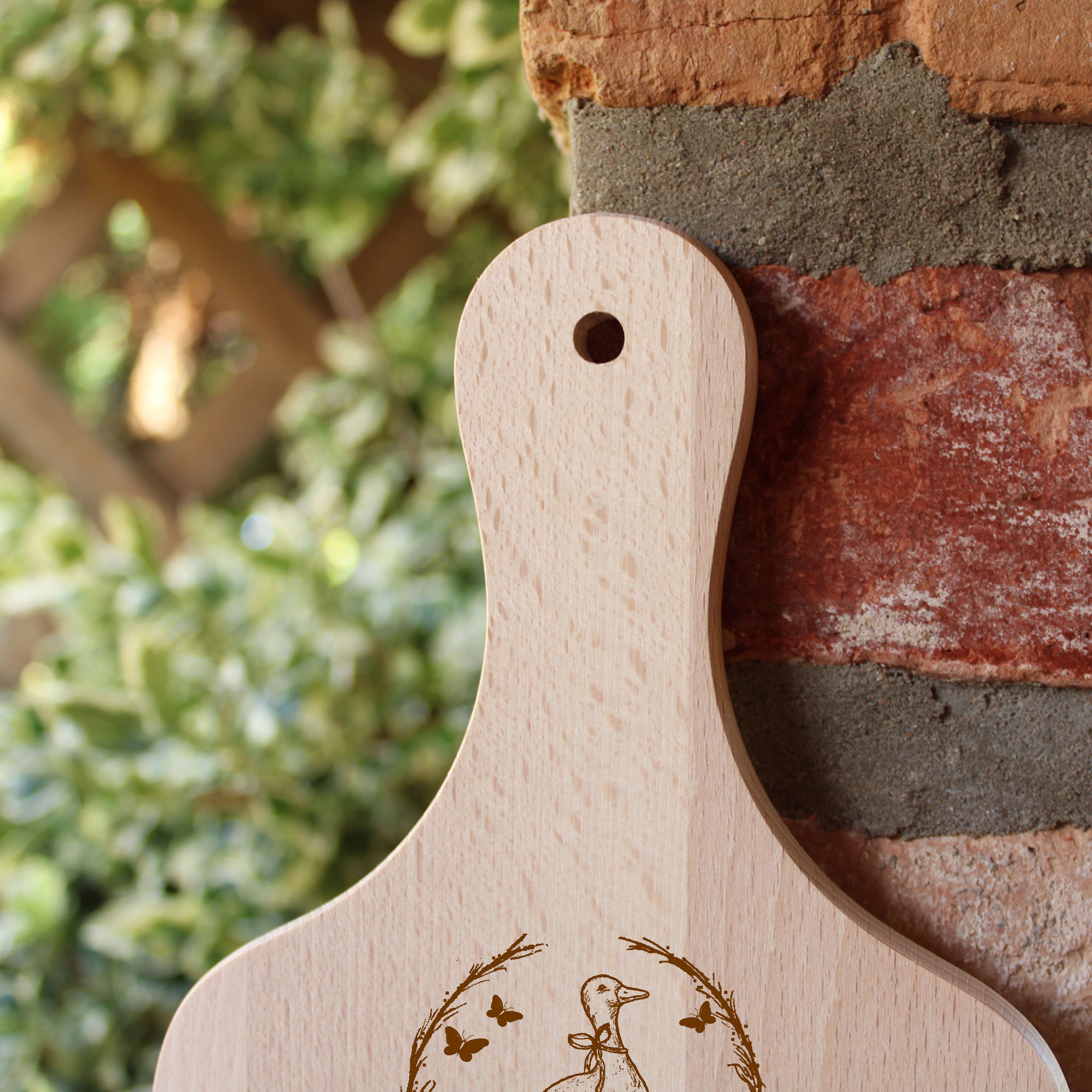 Schneidebrett Frühstücksbrettchen - Gans auf der Wiese - mit Griff 330x150mm