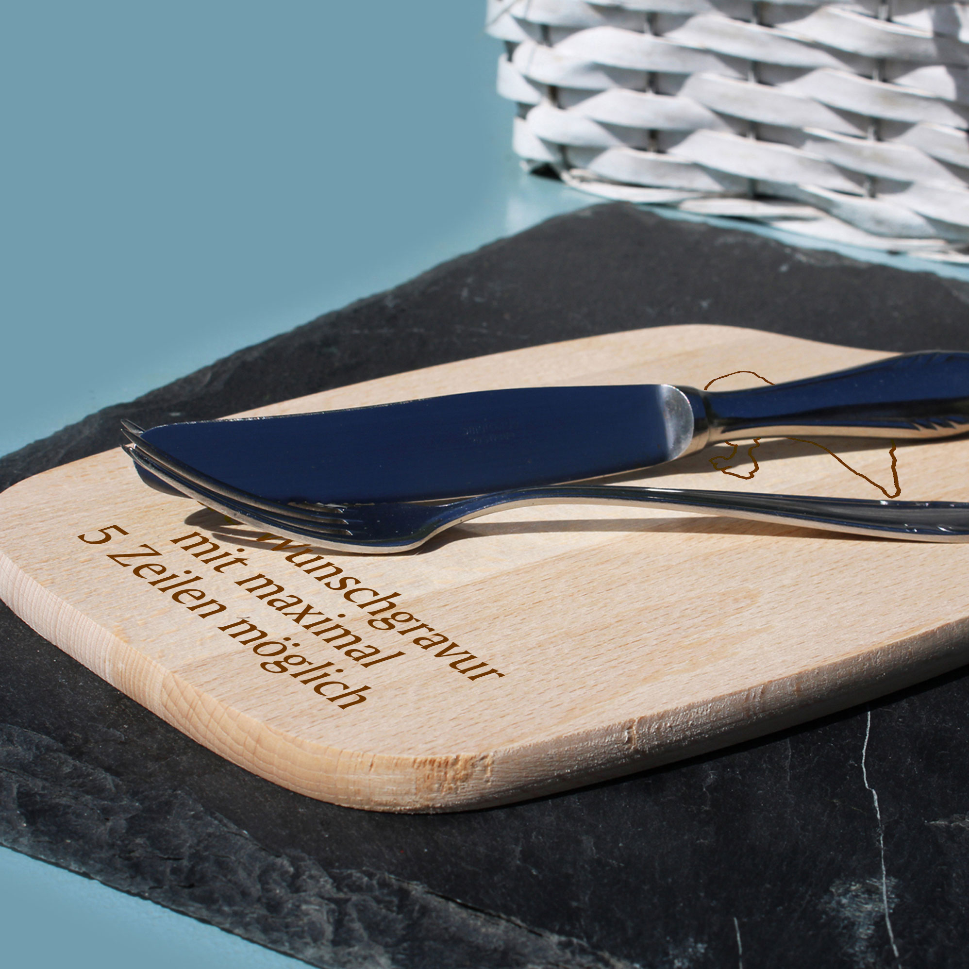 - BRETTCHEN: Die Schneidebretter lassen sich ganz einfach über den Button “jetzt anpassen“ personalisieren. Wir gravieren das Motiv und Ihren Wunschtext auf das Holzbrettchen
