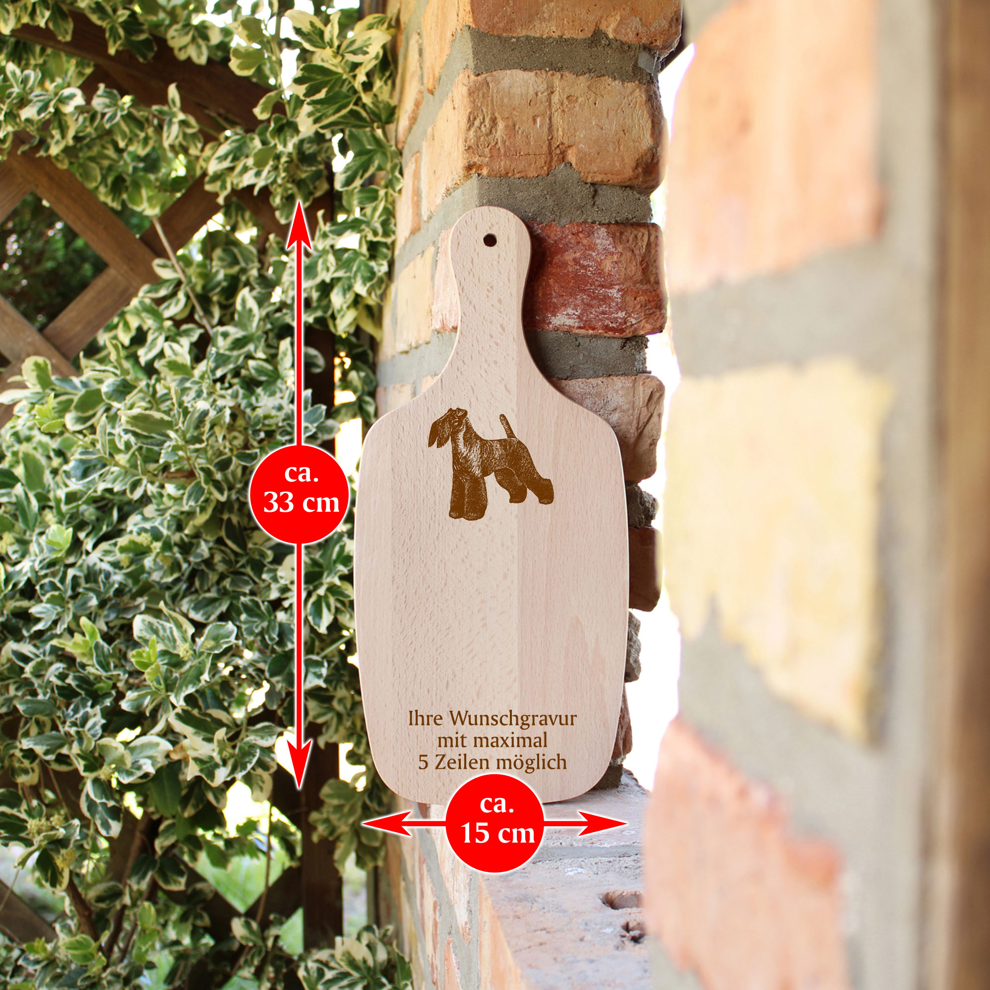 Schneidebrett Frühstücksbrettchen - Kerry Blue Terrier - mit Griff 330x150mm