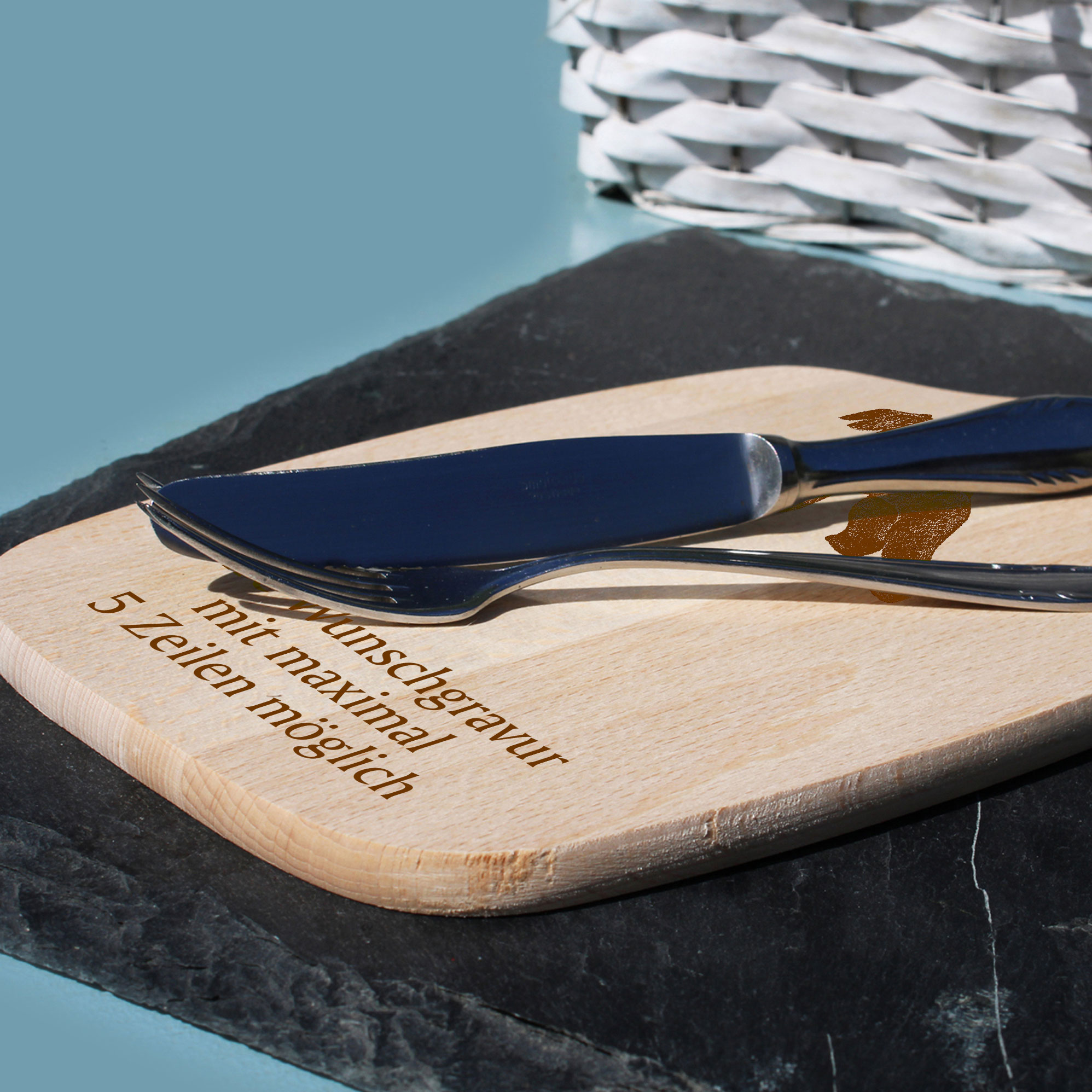 - BRETTCHEN: Die Schneidebretter lassen sich ganz einfach über den Button “jetzt anpassen“ personalisieren. Wir gravieren das Motiv und Ihren Wunschtext auf das Holzbrettchen